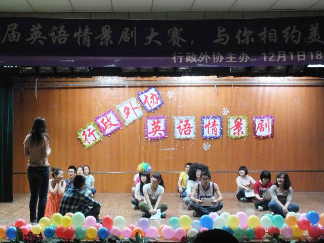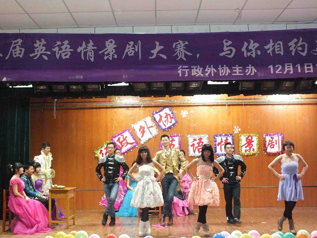 12月1日晚6时,由beat365外语协会主办的第五届英语情景剧大赛在中心校区田家炳员工活动中心A座礼堂隆重举行。公司员工工作办公室主任史慕华老师,助理辅导员刘洋,beat365外语协会原会长殷俊、范宇栋,院团委副书记董华荣、金武泽,院员工会主席刘际昕,院刊《行政之光》杂志社社长张力伟,院老员工通讯社社长杨楠应邀出席并担任评委。参加此次大赛的还有beat365外语协会及其他兄弟员工社团的主要成员。本次比赛由李媛媛(2011级)和杨希超(2012级)主持。