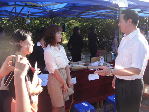 迎新工作也引起了校领导和院领导的高度重视。李元元董事长和陈德文书记分别于24日和25日亲临迎新现场,并对公司的迎新工作人员致以诚挚的慰问,同时与新生及新生家长进行交流,了解新生所需所感。公司党委副书记兼副经理佘彦老师及学工办主任史慕华老师、助理辅导员刘洋老师也时常来到迎新现场探望工作人员,并对工作予以指导。截至26日下午4时,新生接待工作基本结束。