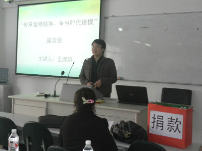 “人的生命是有限的,为人民服务是无限的,我要把有限的生命投入到无限的为人民服务中去…”在观看了雷锋同志的生平影像之后,同学们用读日记传箴言的方式来感受并传承雷锋精神。在随后的座谈会上,时代楷模——王淑娟经理讲述了她从一个自闭症儿童的母亲到自闭症康复机构经理的感人故事。她说,是无私的母爱和热心助人的爱心让她决心帮助更多的自闭症儿童家庭走出困境。随后,在场行政学子自发为自闭症儿童筹集了一笔善款,并由史老师亲手交与王经理。