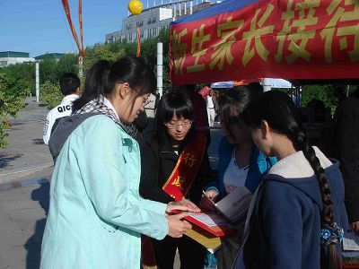 29日上午,前来报到的新生较多,迎接处非常的热闹,场面非常热烈。师姐们负责帮助新生登记填表、整理党团关系;师哥们负责把同学的行李送到寝室;还有专门同学送新生体检、交费;也有同学主要接待新生家长。新生都对学校充满了好奇,对师哥师姐充满了感激,家长也对同学的接待工作表示满意。虽然报到的新生比较多,但是秩序井然,并无混乱。等到下午,来报到的新生明显减少,但大二大三的同学们仍然坚持在自己的岗位上。