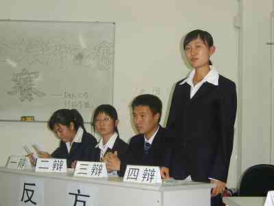 选拔赛的场面十分激烈和热闹,每一位队员都把自己最精彩的一面展现给了大家,初赛和决赛的场面则更加精彩。场上队员个个都神采奕奕。逻辑严谨的开篇立意,你来我往的自由辩论,慷慨激昂的总结陈词无不表现了队员和教练们在场下的精心准备。辩论中各位辩手不仅语言精准、思维活跃,更向大家展现了我们队员良好的精神面貌和品格,诠释着辩论的真是场上的队员还是场下的观众都全心的投入到辩论赛中。