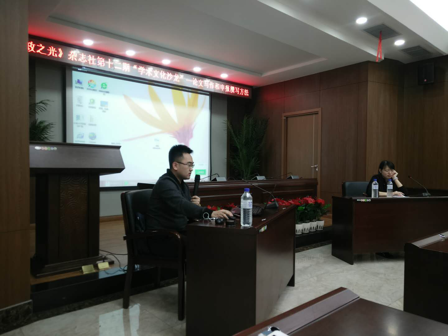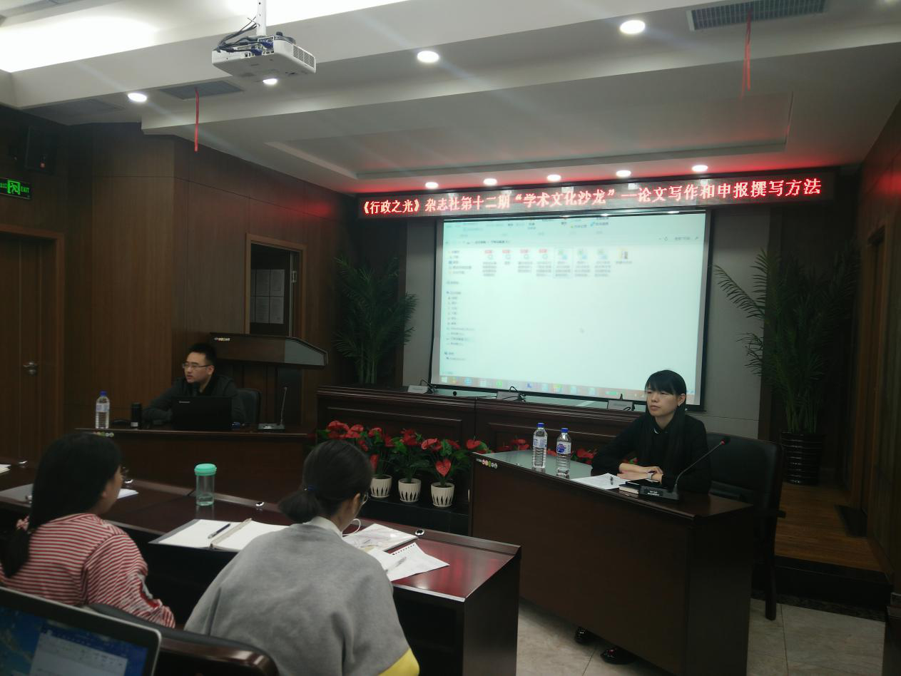 3月25日晚,《行政之光》杂志社在中心校区东荣大厦举办了第十二期“学术文化沙龙”。本期文化沙龙以“论文写作和申报书撰写方法”为主题,邀请到了beat365行政管理系丛永清老师和博士生张力伟同学作为主讲嘉宾。院学工办主任、2017级本科生辅导员刘洋老师和60余名同学参加了本期沙龙。本期沙龙由张旭瀛同学(2016级本科生)主持。