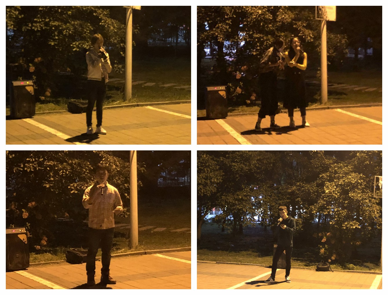 本次活动以自发表演节目的形式进行。体育馆前的路灯下,新生们围坐成圈,本场晚会在员工会成员的表演中拉开序幕,现场气氛热烈、新生踊跃参与。《再别康桥》、《红旗颂》两首风格迥异的诗朗诵引得观众连连鼓掌;流行歌曲《空白格》、《纸短情长》与《霍元甲》,或欢快,或深情,场下的同学们爆发出阵阵欢呼;由朝鲜族同学表演的《眼鼻嘴》&《BANG BANG BANG》燃爆全场,将整场晚会的气氛推向了高潮;民谣风格的《阿楚姑娘》、《南山南》、《成都》等歌曲让人沉醉,并带动了台下同学的大合唱;女生独舞《Hard Carry》再次点燃了全场观众的激情;古风歌曲《化鹤归》、《我的一个道姑朋友》则让人领略了古时风韵。