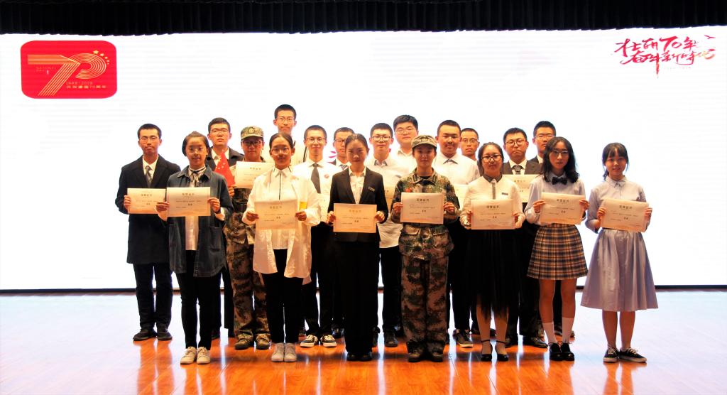 本次系列活动共包含“拳拳赤子心,浓浓爱国情”朗诵比赛、“唱响红色旋律,牢记历史使命”合唱比赛与“壮丽七十载,奋斗新时代”征文比赛三部分。朗诵比赛首先进行。同学们踊跃参与,以饱满的热情展现了《诗意中国》、《宝岛》、《祖国啊,我亲爱的祖国》、《青春中国》、《青春中华,告白祖国》、《鸿志薄云无愧作,我以青春献祖国》等爱国作品。张涵(2019级本科生)、梁恩昊(2019级本科生)等同学声情并茂地朗诵了《宝岛》,描绘了一幅两岸人民血浓于水的感人画面,慷慨激昂地表达了完成祖国统一大业的决心,赢得了现场观众的热烈掌声,并最终获得了朗诵比赛一等奖。