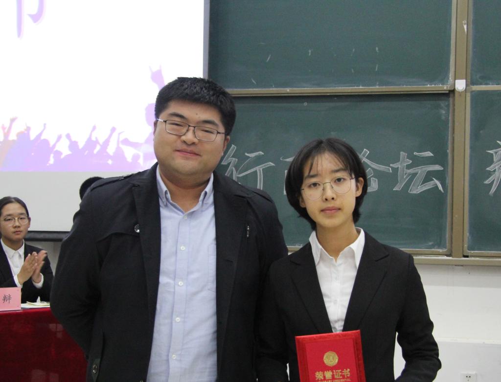 本次比赛的辩题是“自学能力强的人可不可以不受课堂考勤的约束”。围绕辩题,正方代表队(2019级本科生江禹熹、石雨、孙泽文、王馨雨)从特殊型人才的个性需求切入,表达了对更加柔性、更加高效的制度的期望;反方代表队(2019级本科生杨汝嘉、孟子涵、孙楚涵、汤沁)则从课堂的重要性、制度的合理性、员工的个人发展等角度出发,阐述了考勤约束的必要性。双方深入浅出、针锋相对、舌灿莲花,展现了行政学子缜密的思维逻辑与流畅的语言表达能力。最后,于海洋老师对本次辩论赛作了精彩点评,从制度的合理性、延续性、可操作性等方面对辩题作出了深刻解读。比赛结果出炉,反方辩手们以其更为严密的逻辑推理和精彩的现场展示取得了本次辩论赛的最终胜利,反方二辩杨汝嘉同学也凭借其精彩的表现获得了“最佳辩手”的荣誉称号。
