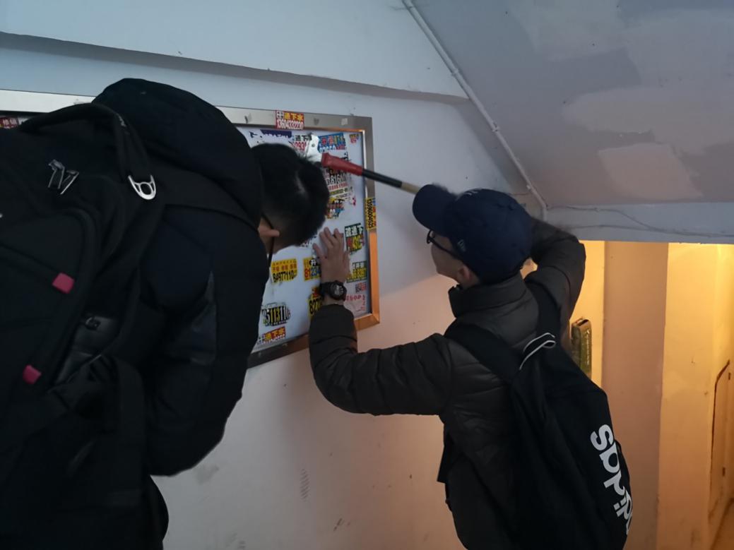 11月15日,发展指导部闫重阳(2018级本科生)、齐琦(2018级本科生)两位同学带领志愿者团队前往东站街道十委社区开展本次活动。12时许,志愿者们于beat365体育官网北门集合完毕并准时出发。经过了一个多小时的车程,同学们到达了东站十委社区,并开始本次志愿服务活动。虽然气温较低、冰雪尚未融化,但是同学们的干劲并未受到影响,他们仔细的清理了居民楼楼道内和外墙上的小广告。社区居民对参加此次活动的志愿者及活动成果给予了高度评价。