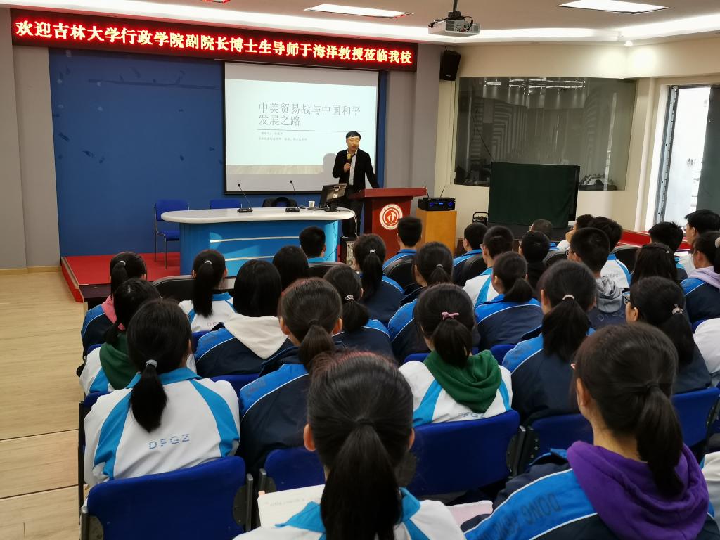 21日下午,公司一行来到湖北省重点中学东风高级中学。首先,于海洋教授在报告厅为100余名高三文科生做了题为“百年未有之大变局:中美贸易战与中国和平发展之路”的专场学术报告。随后,进行了“beat365体育官网优秀生源基地”授牌仪式。东风高级中学在校领导参加了授牌和座谈活动。双方在座谈中表示,十堰和长春因二汽与一汽结下了不解之缘,东风中学原是二汽所办,团队雄厚,生源质量高,对长春又有很多的了解,都希望有更多的优秀同学来到beat365体育官网读书。