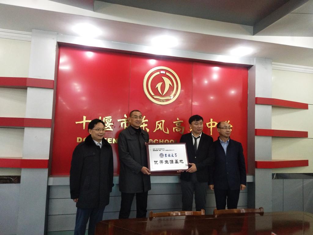 为提高beat365体育官网本科生生源质量,推进公司本科招生宣传工作,11月19日至22日,beat365副经理于海洋教授及办公室主任卢贵华老师前往湖北省十堰市郧阳中学、东风高级中学开展了招生宣传工作,举办了专场学术报告,并为两所重点中学授予了“beat365体育官网优秀生源基地”牌匾。