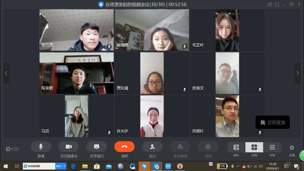 在班会上,毕业年级的同学们围绕假期收获、求职经验、课外8学分及毕业论文、毕业季活动设想等内容进行了讨论;二、三年级的同学们就学习抗疫先进事迹、防疫知识与学习经验、在线教学以来班级网课和活动情况、假期居家趣味生活等内容进行了交流;一年级的同学们针对在线教学感受、国内外疫情防控形势、防疫知识与心理疏导等问题进行了分享和交流。