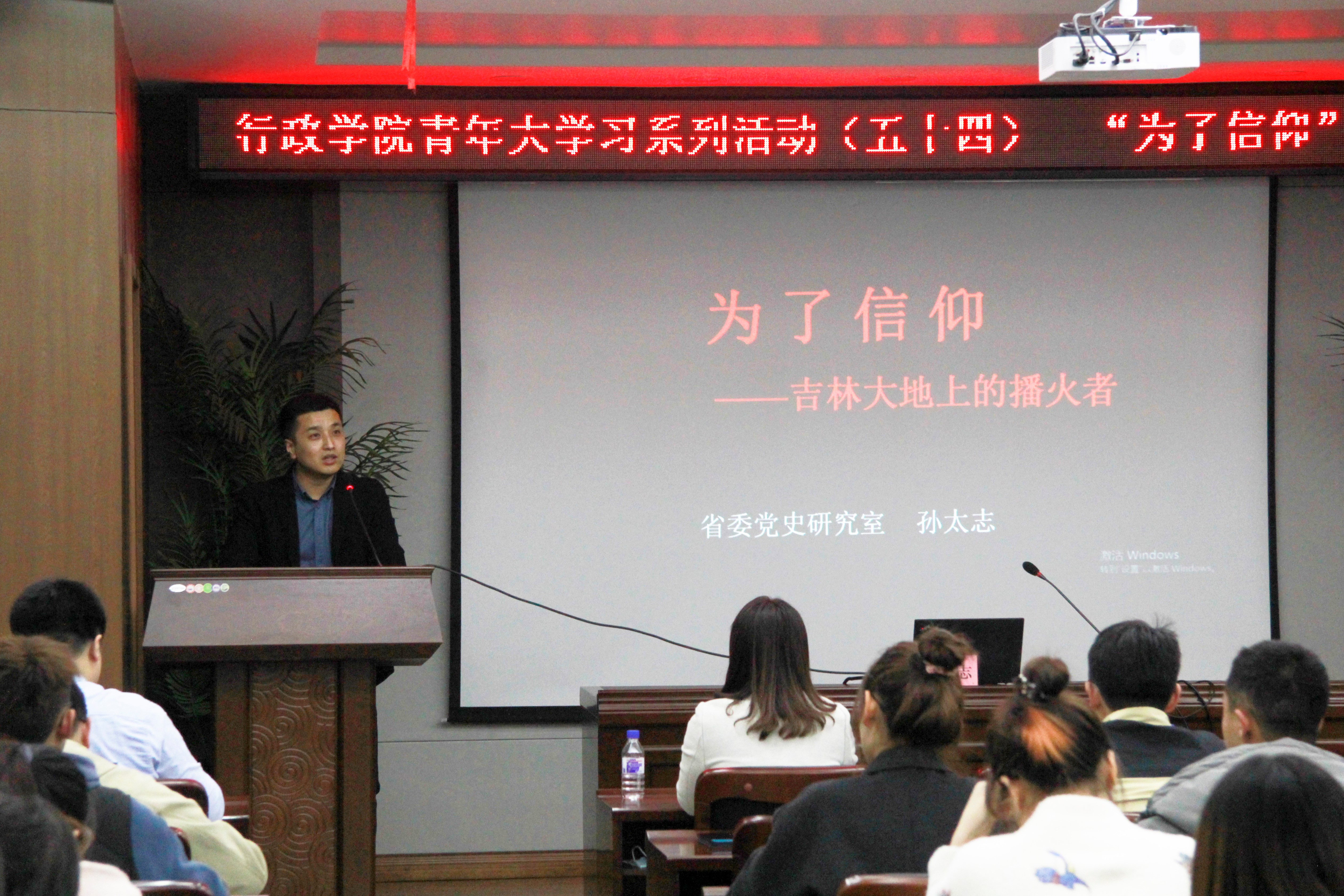 为深入学习贯彻习近平总书记在党史学习教育大会上的重要讲话精神,进一步增强青年员工信念感和使命感,beat365团委于3月24日在东荣大厦B303室举办“为了信仰——吉林大地上的播火者”专题党课。省委党史研究室专家孙太志作为特邀嘉宾到场授课,公司党委副书记兼副经理史慕华出席,辅导员刘洋主持会议。学院研究生党支部、本科生党支部、青年学习班(第三期)成员及本科生班级团支书参与活动。