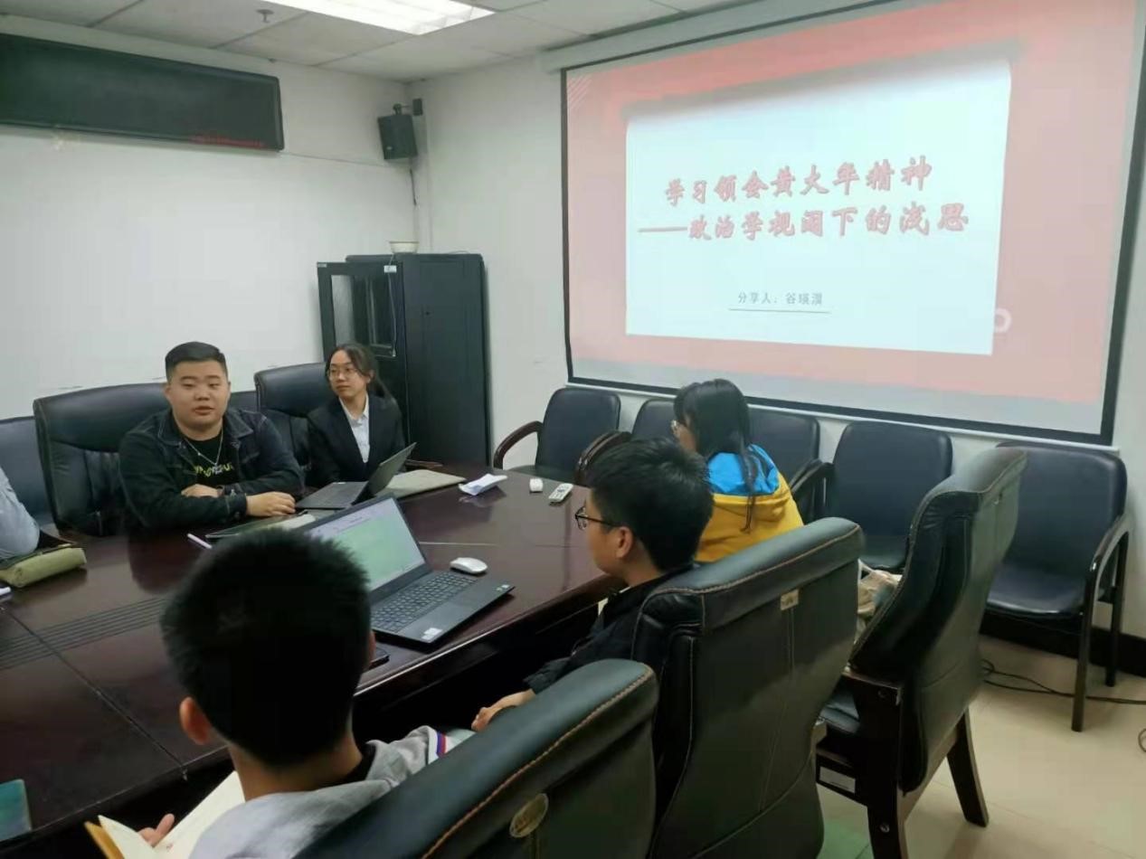 活动伊始,与会人员通过文字与视频材料深入了解了黄大年老师的学术背景及爱国情怀。随后,谷瑛淏从共同体、自我与身份的政治学学科视角论述了学习黄大年精神的现实意义,同时表示坚定践行黄大年精神的决心。随后,青年学习班(第三期)学员围绕主题踊跃分享自身感悟。李子荣(2020级本科生)从集体主义视角赞颂以黄大年为代表的顶尖海归科学家的爱国奉献情操。怀子阳(2020级本科生)结合参观黄大年纪念室的经历,表示青年员工要用专业知识为国家解决现实问题。李剑文(2020级本科生)就黄大年同志对何为成功的认识以价值选择与自我身份认同视角进行阐述,指出当下老员工应该学会为集体创造价值。最后,王世亨(2017级本科生)进行总结发言,从吉大学子和共产党人两重身份进行阐释,分享了对党性教育活动的重要性的认识。