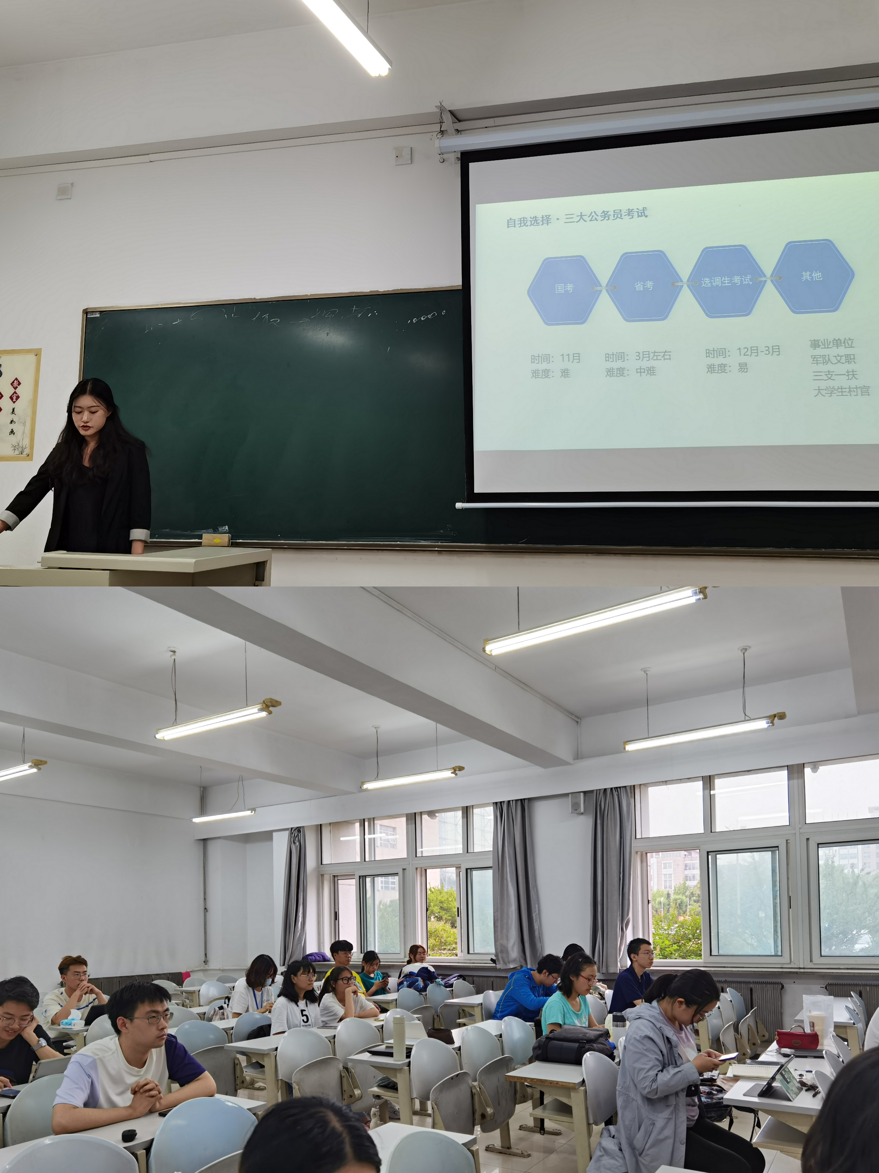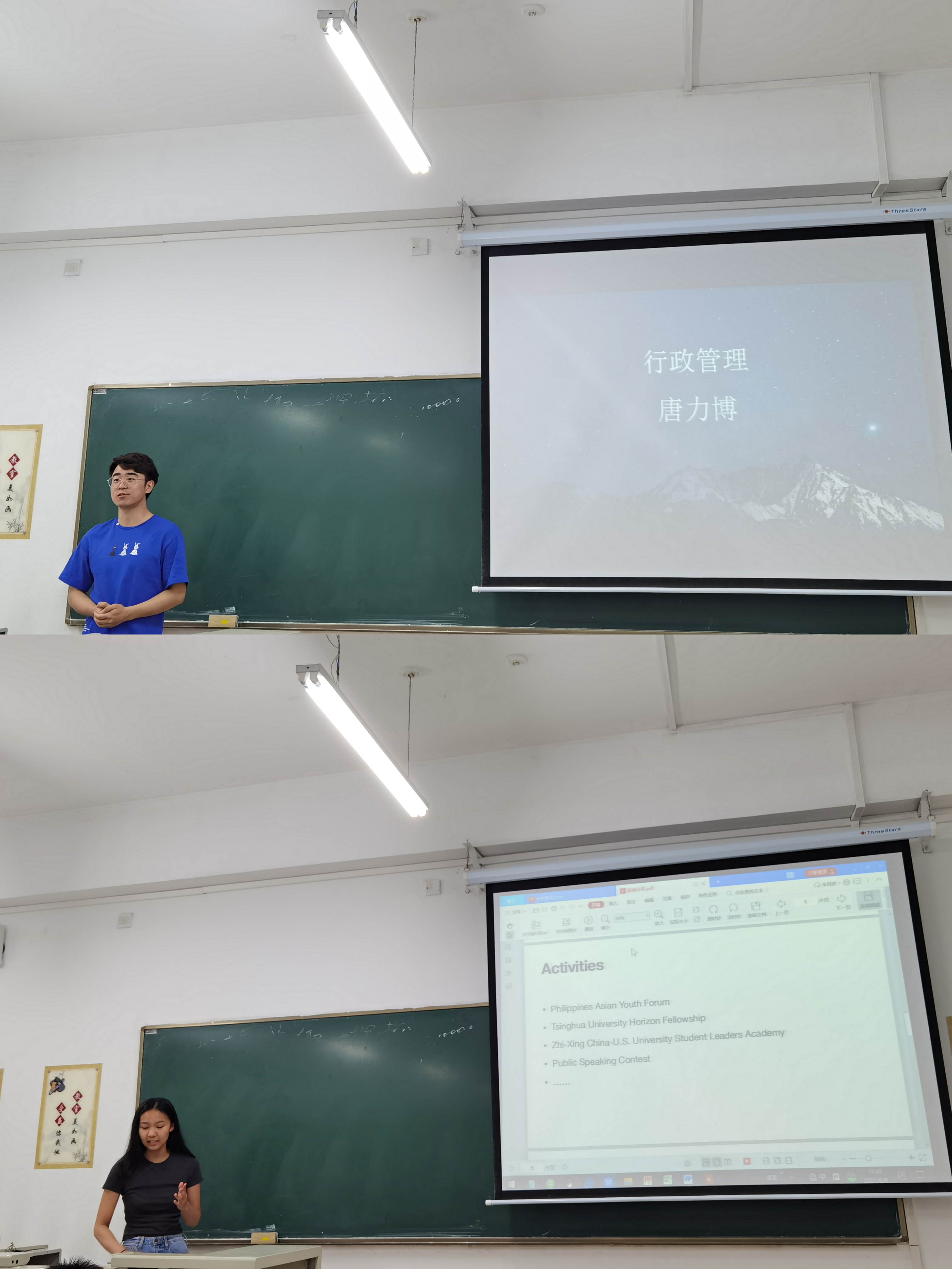 活动期间,“学业圆梦组”王世亨同学根据自身经历,分享了政治学与行政学专业保研夏令营和前期准备的相关经验。李想同学详细介绍了非法学本科专业考取法硕的职业选择方向与局限。唐力博同学结合自身实际,介绍了考研历程与专业备考经验,并推荐了相关书目。“海外追梦组”崔睿同学介绍了本专业相关的海外项目及申请经验。“接续奋进组”付子钰同学介绍了自我选择与自我调控的重要性及方式,并详细讲解考公相关政策与考录流程。