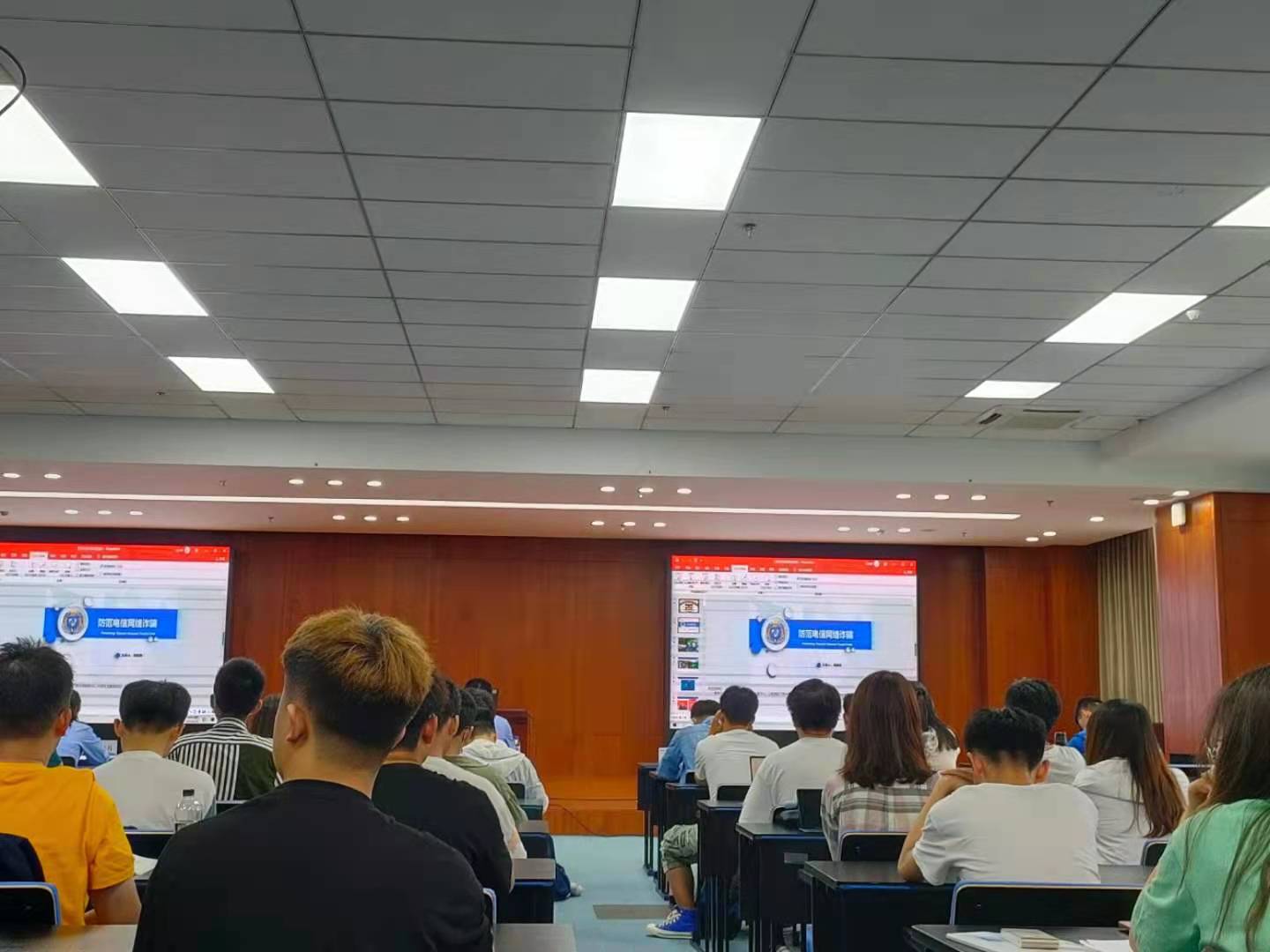 为进一步加强公司本科生防范网络电信诈骗意识和能力,2021年6月10日18:30,党委员工工作部与保卫处共同在中心校区鼎新图书馆四楼报告厅开展了防范网络电信诈骗——“同上一堂安全课”活动。