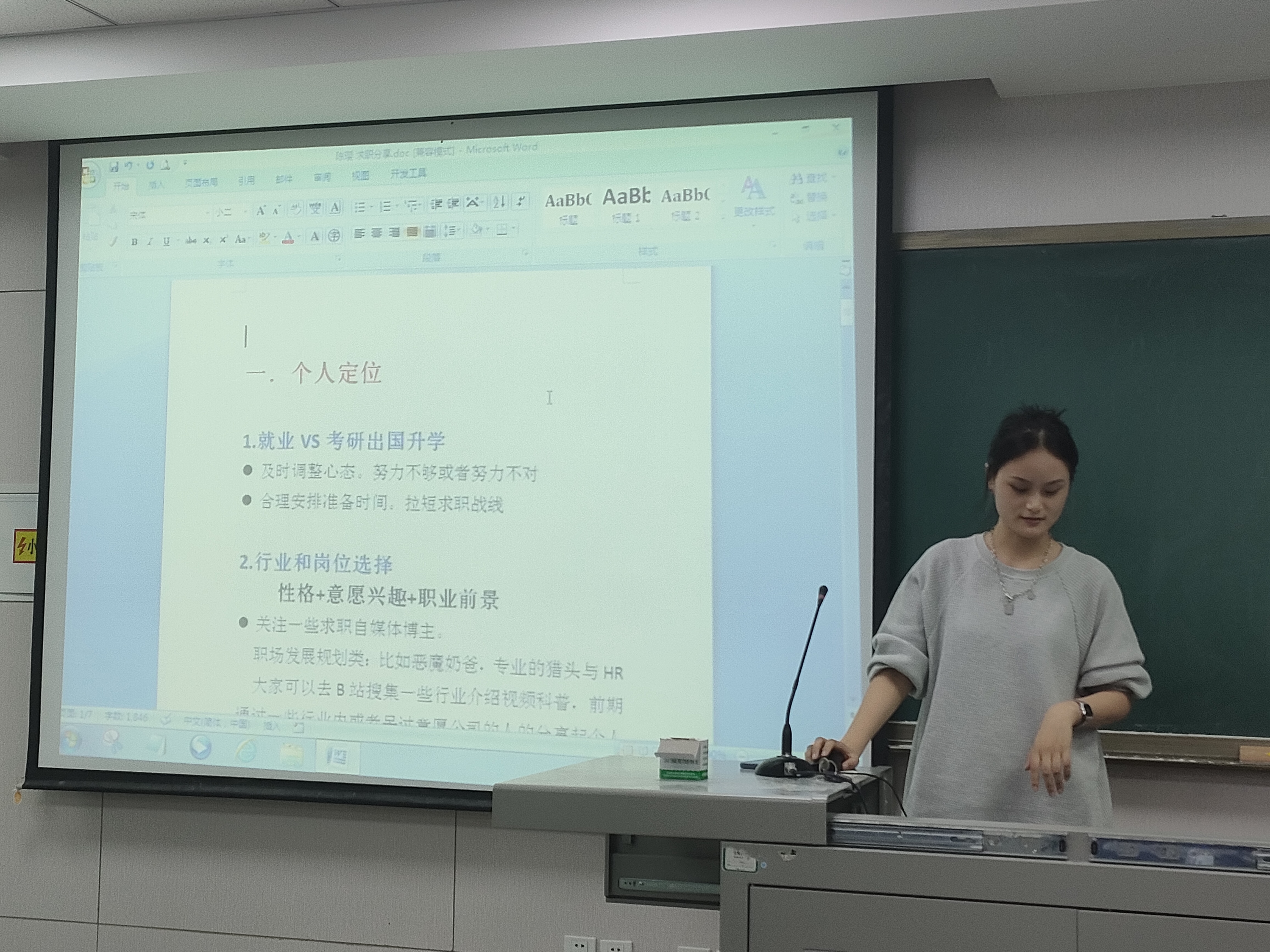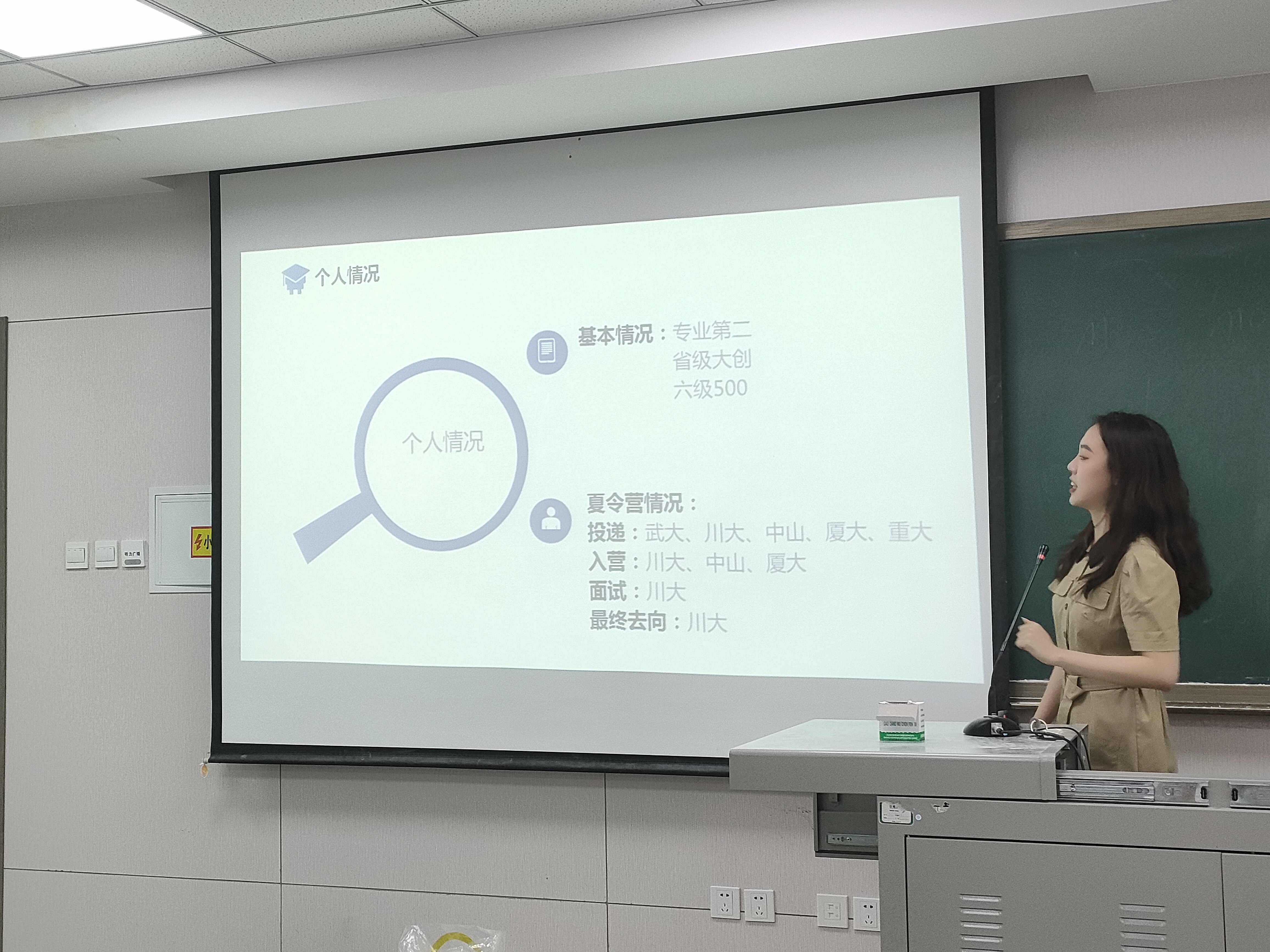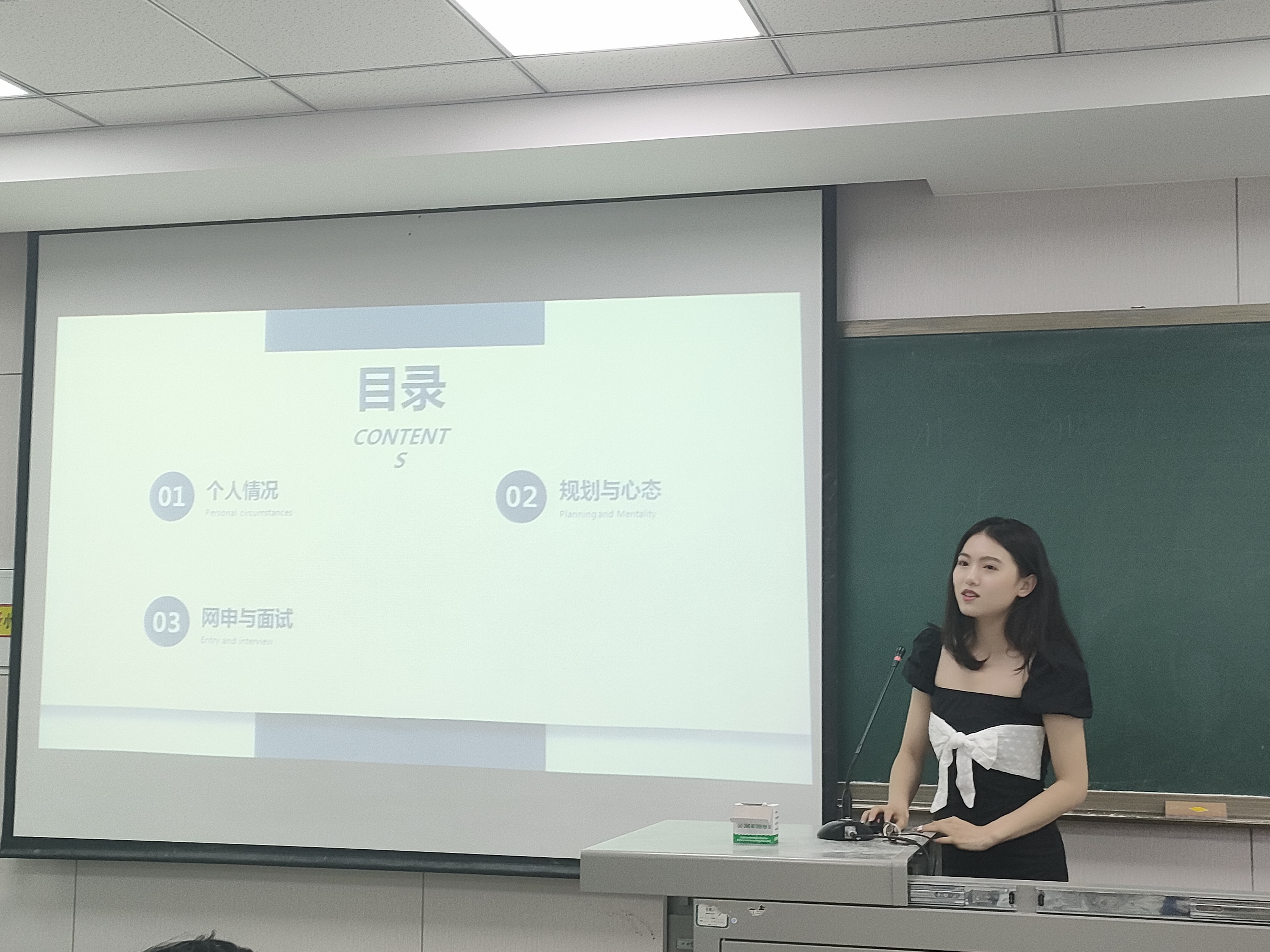 活动期间,“学业圆梦组”2017级本科生丁指钟根据自身经历,介绍了考研历程与专业备考经验。王思雨详细介绍了保研相关规划及网申、面试准备。贺玉婧结合自身实际,介绍了保研前期准备与面试相关经验。张砚清详细介绍了志愿选择与考研准备的过程。“职场逐梦组”陈璎介绍了自身求职的过程并分享岗位竞聘的详细经验。
