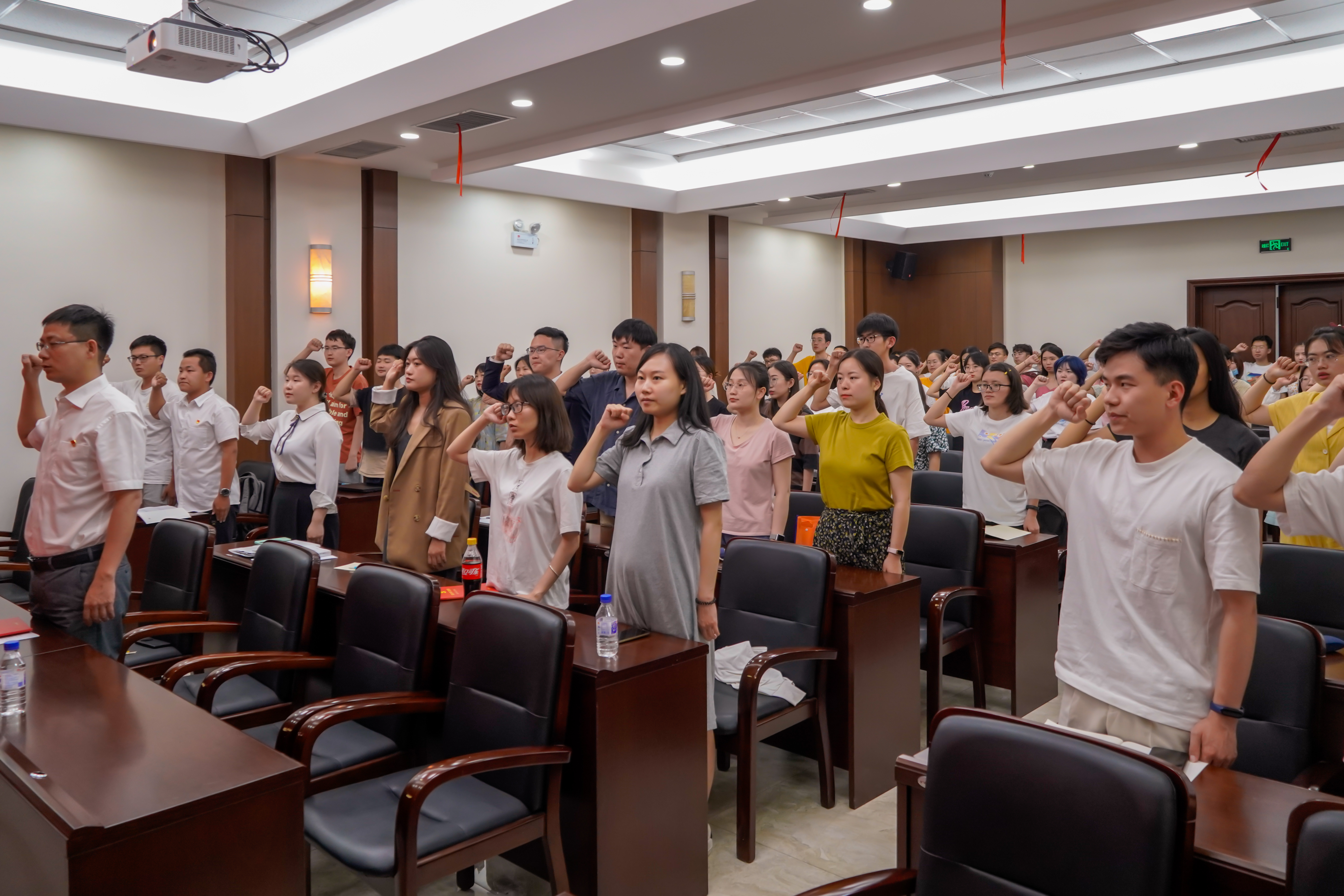 活动伊始,6位员工党员结合党史学习教育作微党课分享。研究生裴月莹与刘妍分别以“透过校史学党史,一生不忘吉大志”与“从党史学习中汲取前进力量”作了精彩讲述,本科生江禹熹、孟从华、王馨瑶、崔贺依次作了“学史明理”、“学史增信”、“学史崇德”、“学史力行”主题微党课分享。微党课以员工党员的视角,通过大学期间的学习实践经历,深刻感悟党的百年奋斗历程,从不同的方面梳理总结党史中凝结的宝贵经验和伟大精神,进一步坚定当代青年的初心使命和责任担当。随后,全体党员由张洁领誓,面向党旗,重温入党誓词。
