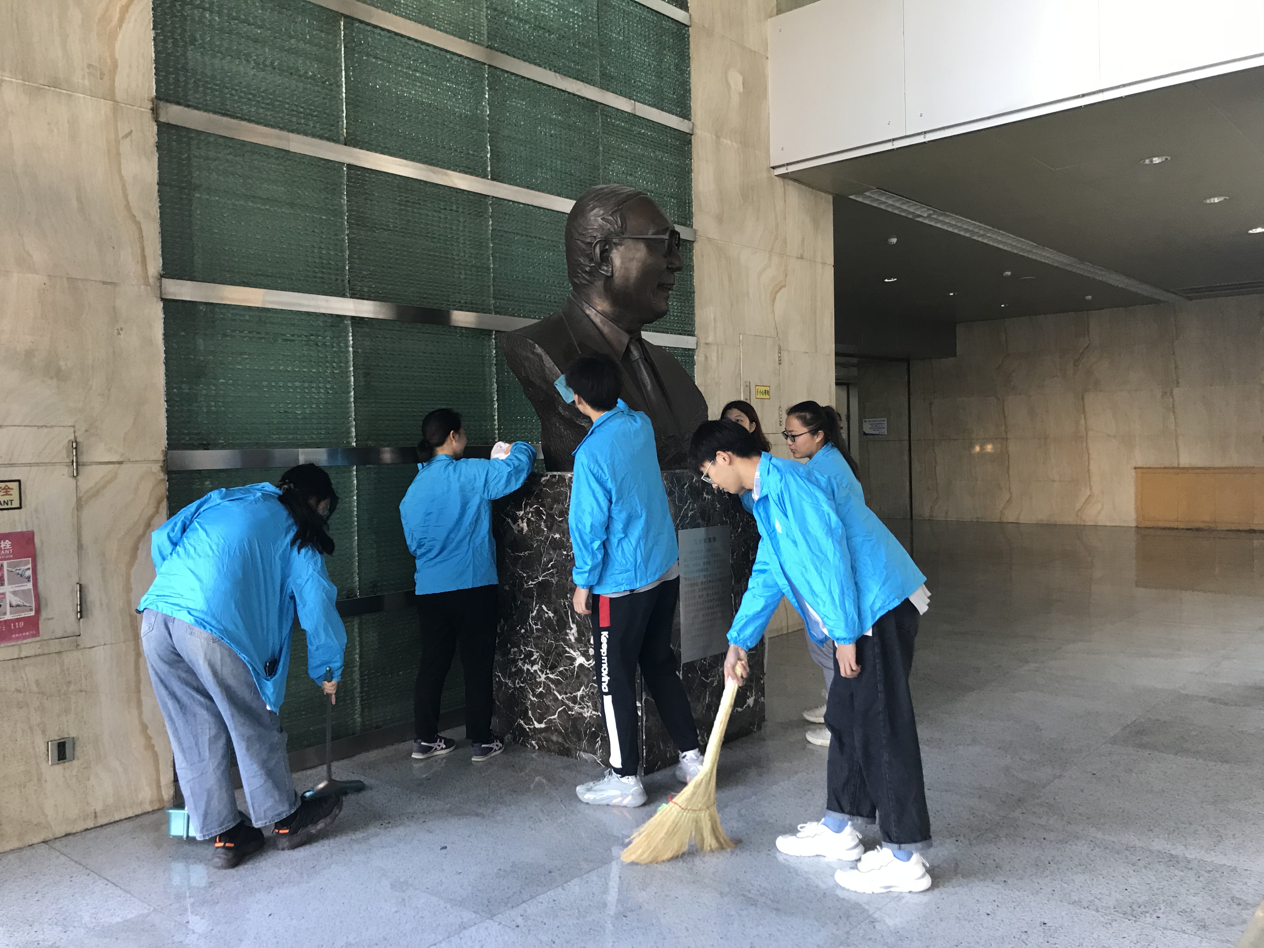 活动伊始,同学们先于东荣大厦一楼的王惠岩先生的雕像处进行院史学习。光阴不语,英魂不朽。同学们于雕像前学习先生创建beat365体育官网政治学研究室以及beat365体育官网政治学系的光辉历史;传承先生“心系国家、万事师表,矢志不移、守正创新”的高尚情操。学习结束后,同学们自发清理王惠岩先生雕像。一次次地擦拭,小心翼翼,一遍遍地打扫,一丝不苟,无不透露出行政学子对于吉大政治学科奠基人——王惠岩先生的敬仰之情。