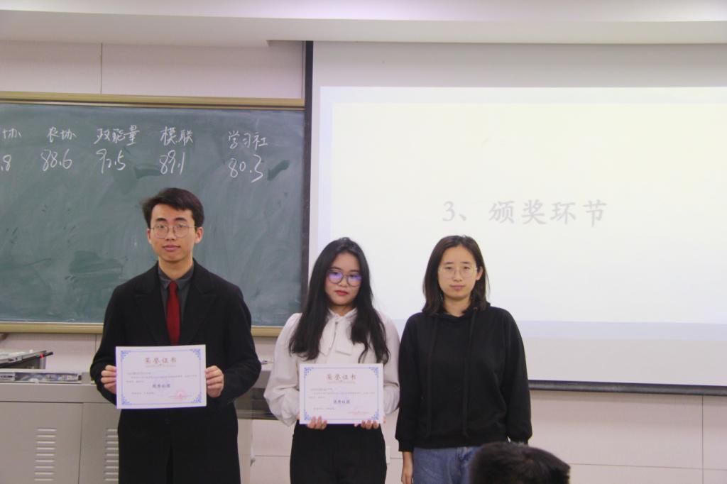 本次大会分为年终答辩、换届大会和总结环节三个部分。首先,各社团负责同学围绕社团本学年的活动开展状况、执行团组织架构、今后发展规划等方面进行现场答辩,社团主要负责人进行了个人工作述职。根据答辩内容,评委对负责人进行了提问。随后,评委根据现场答辩表现、社团内部建设、活动举办情况进行打分。综合现场分数与社团本学年建档立案情况、例会出勤及工作态度得分,beat365体育官网政能量志愿者协会、beat365体育官网模拟联合国协会获评“优秀社团”。