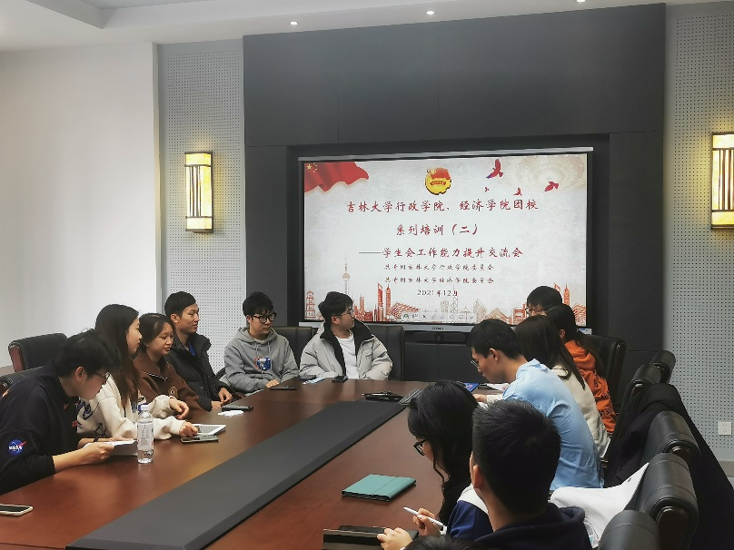 首先,公司员工会工作人员分享员工工作手册,并依据内容进行具体讲解,分享议事管理制度、宣传运行机制与各部门工作模式,经济学院同学就新媒体运营等问题进行具体提问。其次,两院团委员工会成员就相关职责部门具体工作进行交流与学习,互相了解并借鉴学院经典活动,针对各自缺点与不足进行反思。最后,两院团委员工会成员就近期活动策划情况进行交流,为两院未来进行院系间友好联动筑牢基础。