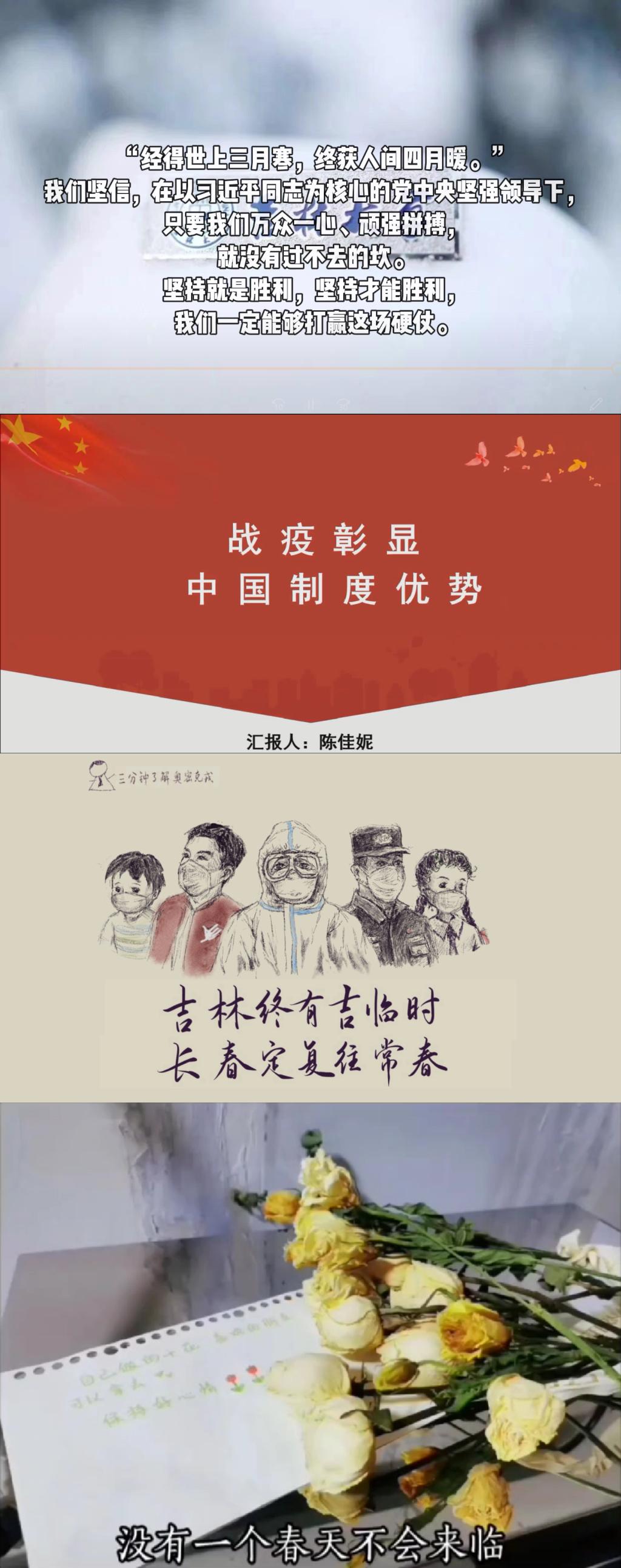 本次防疫思政微视频立项工作不仅激发了同学们的创作热情,还展示了同心偕行、乐观抗疫的青春精神,激励行政学子以更加饱满精神投身到专业学习与校园疫情防控工作中去。足音铿锵奋力行,春光不负赶路人。我们也始终相信,长春疫情防控保卫战必将取得决战决胜阶段的最终胜利!(文:公司员工会组织建设部朱天恒 图:beat365本科生)