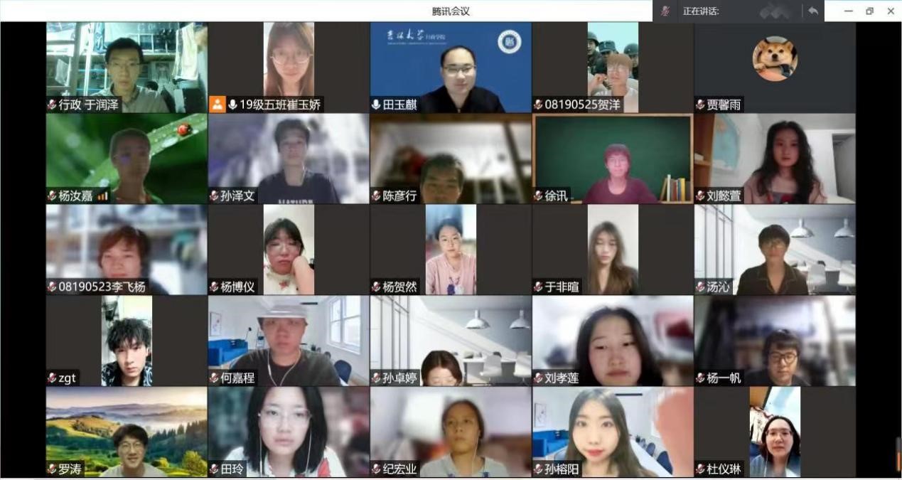 4月15日晚,班主任田玉麒老师与2019级五班全体同学共同开展本学期第五次线上班会。针对当前寝室封闭期间员工的心理健康调节,师生畅谈感受,从情绪产生原因到有效调节方法等多方面开展交流。心理委员杨一帆同学首先发言,表示在封闭寝室管理中,同学们产生情绪波动是正常的,应正视而非排斥这种心态变化并进行积极的调节。随后其他五名班委,崔玉娇、贺洋、刘孝莲、于润泽和孙榕阳同学也都与班级同学分享自己的心态变化和时间安排。田老师以自身经历开导同学们,鼓励同学们规律作息、加强运动,在寝室内也要尽可能保持一定的运动量。最后,对于前几次班会中对未来规划和学习课程存在困惑的同学,田老师进一步询问了解几位同学近期的调整和进展,于非暄、陈彦行同学就之前提出的问题与老师进行了交流。