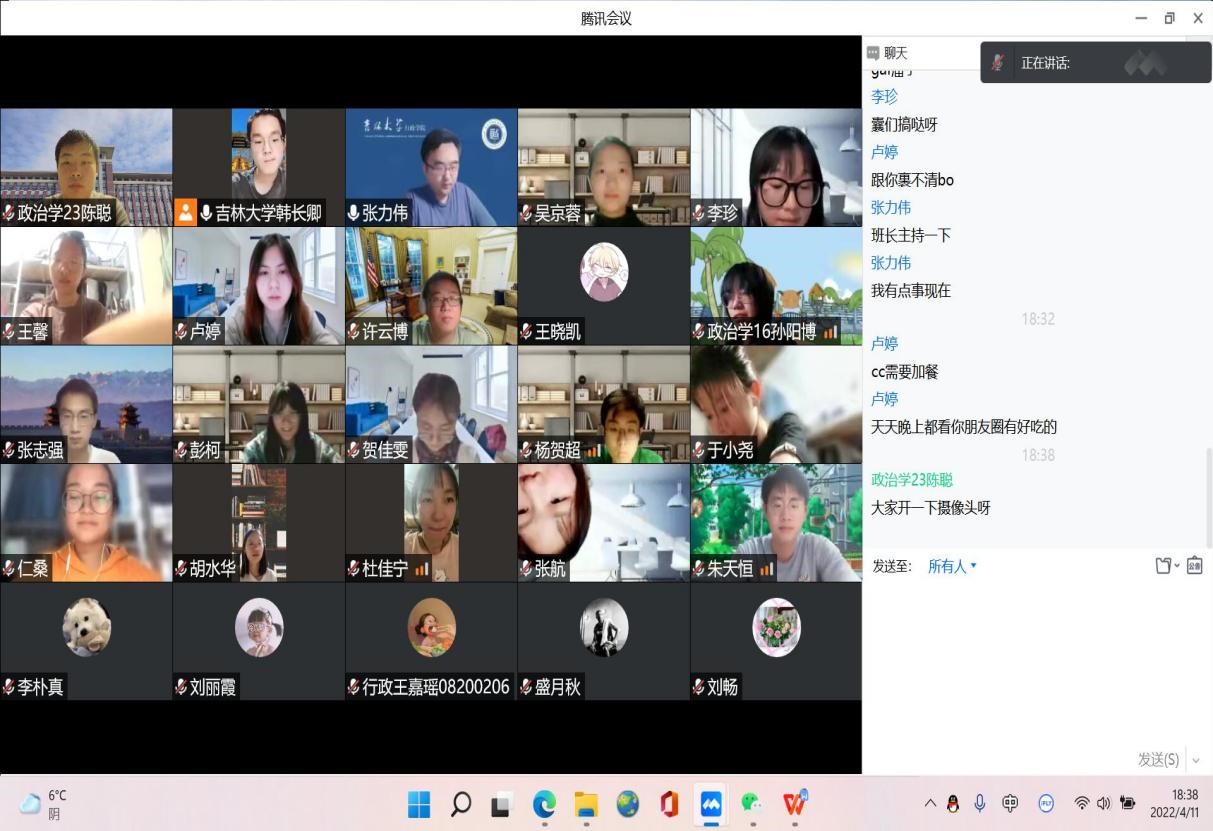 经过45天的艰苦鏖战、奋力冲刺,克服重重困难、历尽万千艰辛,处于封寝状态的吉大同学们对抗疫必胜的信心也更为坚定。4月11日至4月16日,beat3652020级各班举行第五期“共抗疫情,我们在一起”线上主题教育班会,班主任老师通过视频会议与各班同学见面,给同学们传递了关心与鼓励。