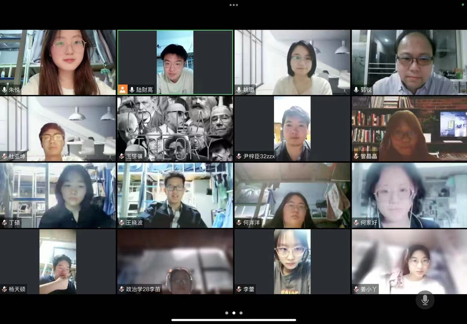 4月11日晚,刘畅、张力伟两位班主任老师与2020级二班全体同学再聚线上,举办第五期线上主题班会。老师们首先回应了最近同学们比较关切的就餐问题,鼓励大家及时反映问题诉求,同时希望大家互相理解体谅,担当抗疫责任、做到理性思考。随后,大家延续了上期班会的话题,继续对东北烧烤文化进行了分享与探讨。张力伟老师从专业视角分析了东北烧烤文化背后的社会背景与心理动因,提到吃串是内嵌于东北文化中的一种非正式的社会联结方式,并举例说明了东北文化实现社会聚合的方式,反映出东北的社会结构与东北文化内在的社会特点。刘畅老师在班会最后进行了总结,鼓励大家在读书的过程中改变格局眼光与对事物的认知和理解,并希望大家能够在观察社会中体悟专业奥秘,感悟人间烟火,在学习专业知识的同时读懂参透社会这本大书。