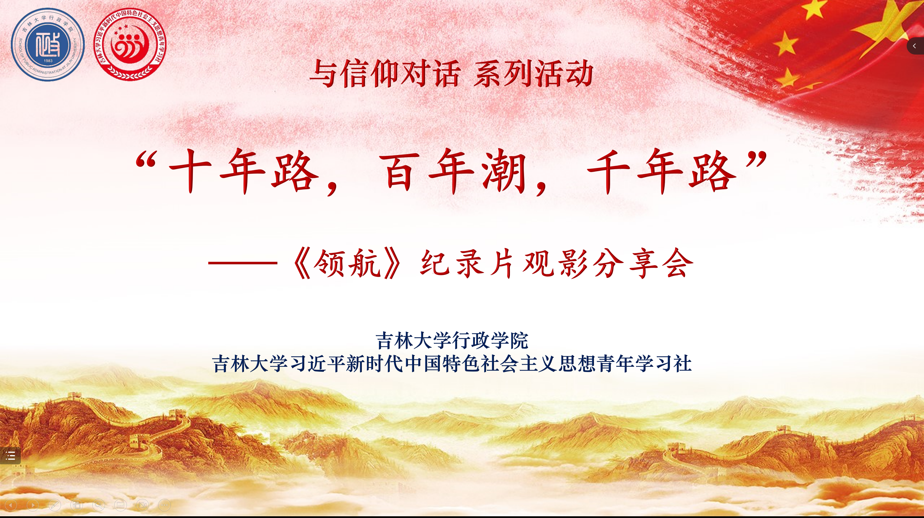 为深入学习宣传贯彻党的二十大精神,引导行政学子学习贯彻习近平新时代中国特色社会主义思想,鼓励青年员工踔厉奋发、笃行不怠。beat365体育官网习近平新时代中国特色社会主义思想青年学习社于2022年10月23日上午在线上成功举办首期“十年路,百年潮,千年路”——《领航》纪录片观影分享会。