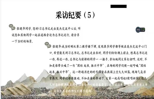 第一部分,背景介绍环节。各班团支书通过事先对于《习近平与老员工朋友们》章节内容的资料准备,向同学们具体介绍了诸如四十五章、四十八章等章节内容,并以观看视频的方式,让同学们更加深刻地了解到《习近平与老员工朋友们》一书的结构展开及中心主旨。习近平总书记对高等教育发展和青年事业的关心与关怀对beat365体育官网学子而言同样具有深刻的指导意义,同学们纷纷表示,青年学子一定要把握好教育的内在规律和自身的发展轨迹,立鸿鹄志、做奋斗者,把个人发展熔铸进时代的潮流中去。