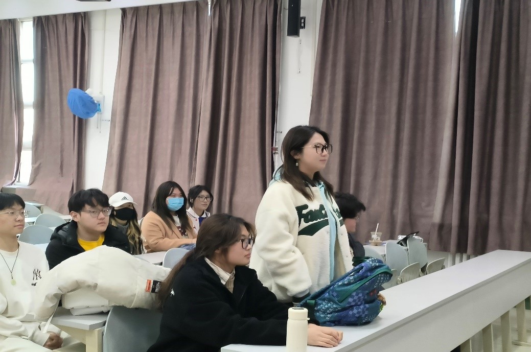 在材料学习环节,崔景琦(2023级本科生)带领同学们详细学习了此次问答的主要内容。经过对正文部分的学习,同学们深刻了解到在国际合作与科技进步、涉外法律等热点话题,我国均体现出了“始终坚持改革开放”的基本国策,也深入学习到全国人大将立足保障和改善民生抓立法,以高质量立法保障高质量经济发展。
