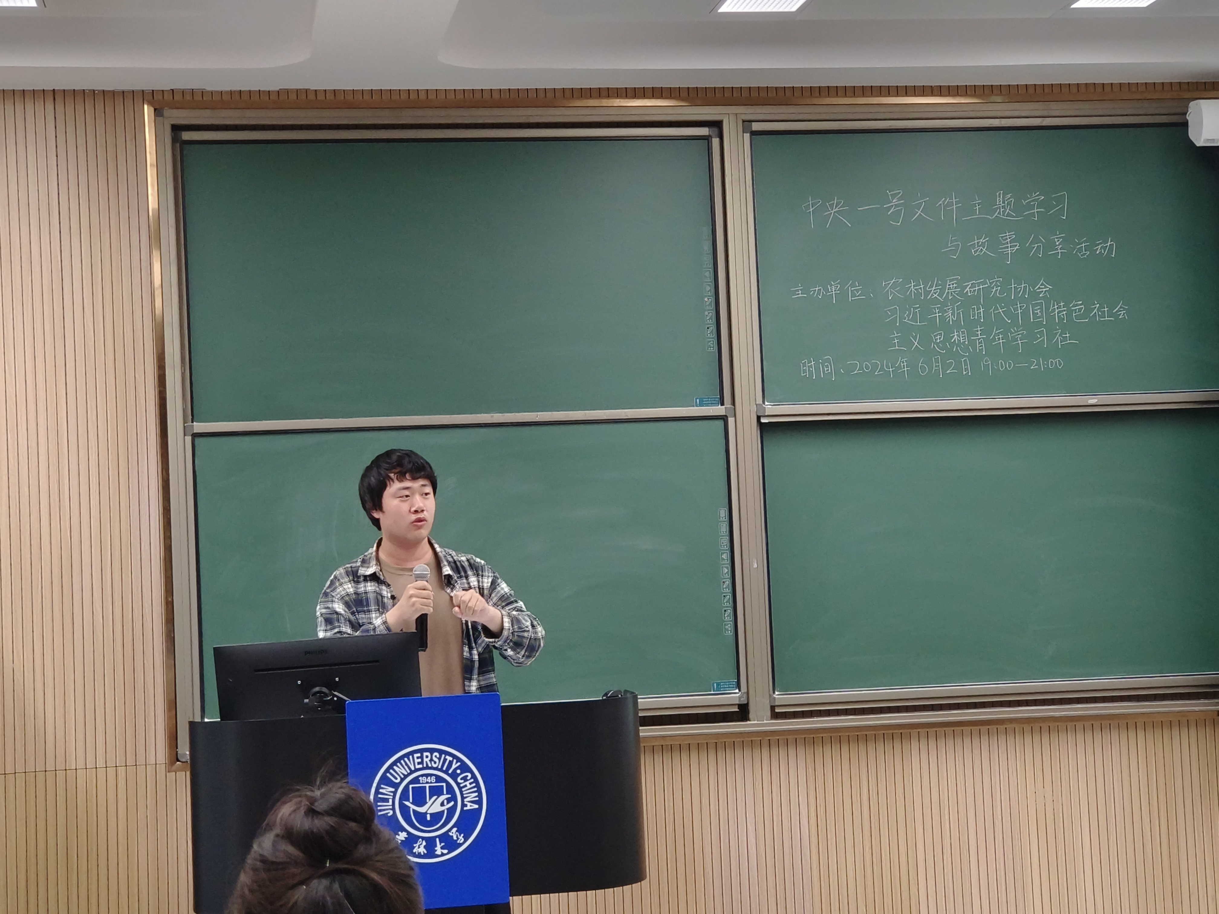 为深入学习《中共中央国务院关于学习运里“千村示范、万村整治”工程经验有力有效推进乡村全面振兴的意见》,激发同学们投身基层,为乡村振兴贡献力量的热情,坚定同学们服务三农、投身乡村建设、实现中华民族伟大复兴的信心与决心,beat365体育官网农村发展研究协会于2024年6月2日晚在中心校区逸夫楼一阶举办“中央一号文件”主题学习与故事分享活动,主题学习活动刘玉馨(2023级本科生)主持。