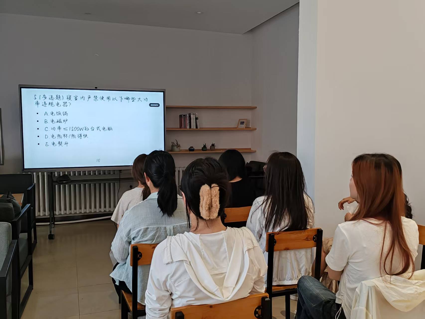 知识问答:智慧碰撞,点亮青春。该环节精心设计了涵盖校园文化、安全常识等多领域的问题,旨在激发同学们的学习热情与团队协作能力。比赛现场,各位同学聚精会神,积极思考,面对一道道富有挑战性的问题,凭借扎实的知识储备和默契的配合,给出了精彩的回答,展现了同学们的智慧与才华,也增加了同学们的寝室安全知识。