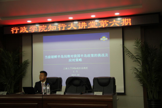 讲座中,王生教授指出朝鲜半岛美韩大规模军演和朝鲜试射导弹,半岛军事到了剑拔弩张的地步,面临生战的挑战。他就朝核问题、萨德问题面临的困局、中国的应对策略和对半岛问题的定位等方面进行了讲授。王生教授鞭辟入里、深入浅出的讲解引发了在场师生的共鸣和兴趣。