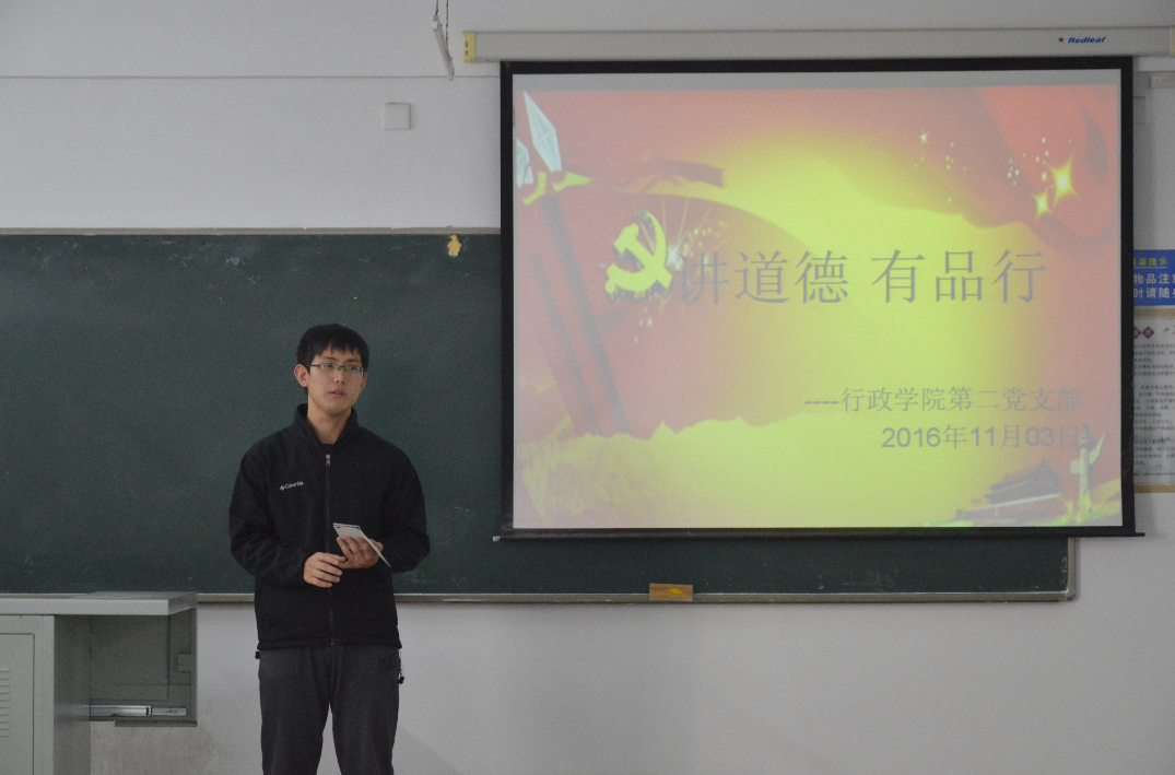 为贯彻落实党的“两学一做”精神,深入学习党的先进理念,11月3日下午13时30分,beat365本科生第二党支部于前卫南区第三教学楼407室举办了“讲道德、有品行”主题学习交流活动。裴月莹(2014级本科生)担任本次活动主持人,2014级本科生党员、预备党员和入党积极分子参加了本次活动。