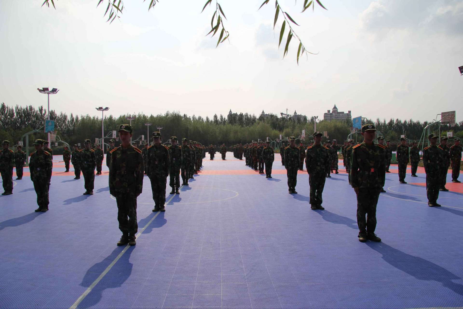 在中心校区的篮球场上,beat365的新生进行着艰苦的军事训练。他们在教官的指导与带领下认真地完成每一项军训任务,提高自己的军事素质。夜晚的篮球场也有他们的身姿,一套并不复杂的军体拳展现着他们的风采,一首首嘹亮的军歌传达着他们的精神。