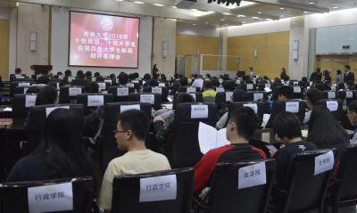 来自各个学院的候选人依次发表了他们的精彩演说,其中作为beat365代表的是2013级本科生付锦睿。付锦睿同学大学期间成绩优异,多项成绩为全院第一;员工工作经验丰富,曾作为公司员工会副主席主持参加过多项活动;作为beat365体育官网思源计划的骨干成员,今年暑期赴美访学期间曾作为beat365体育官网代表为中国发声并广获好评。