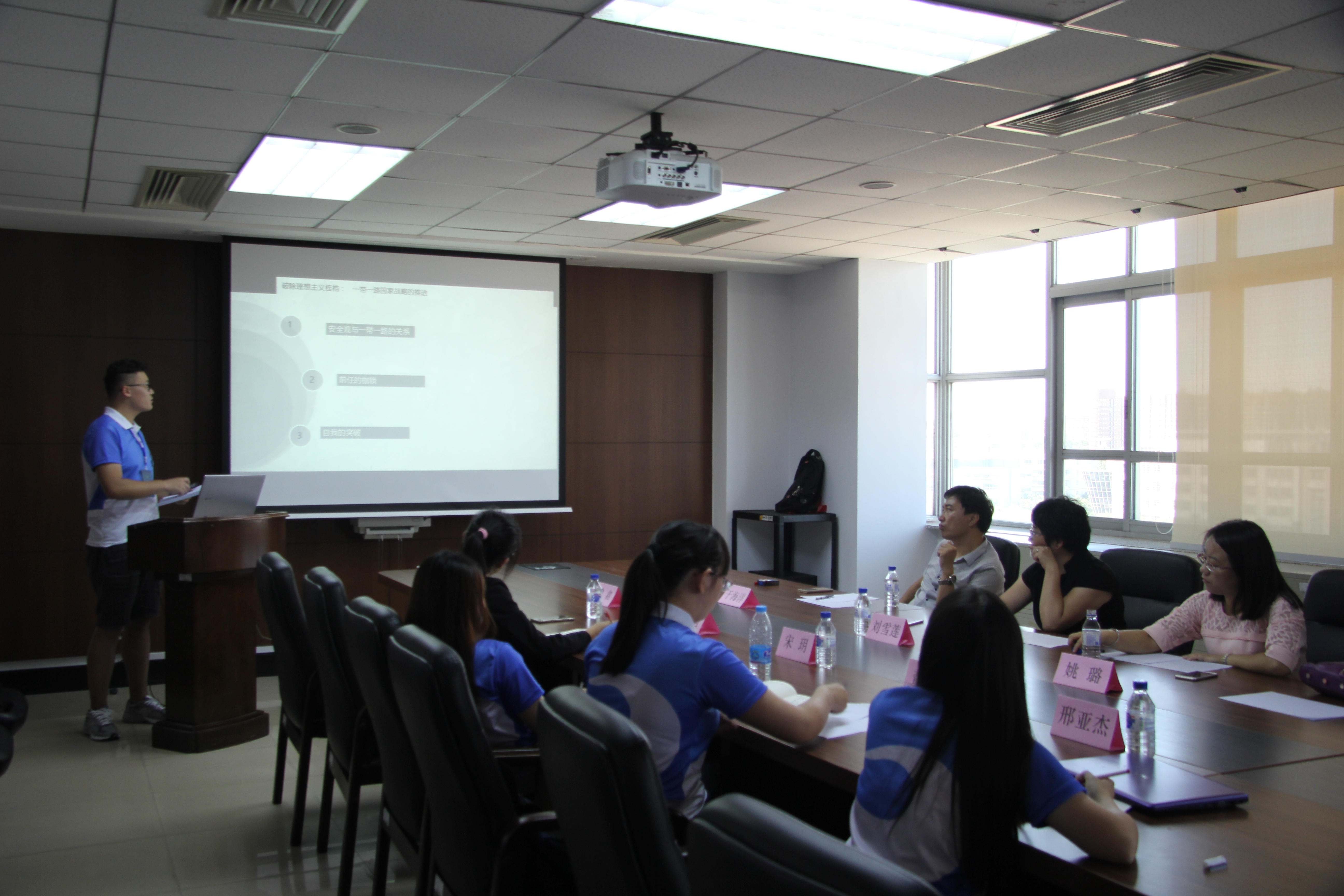 下午13:00,营员进行面试,面试共分政治学、国际政治、行政管理一、二组四个会场。面试主要为个人简介和成果展示、营员提问、老师总结三个环节。最后进行无领导小组讨论。