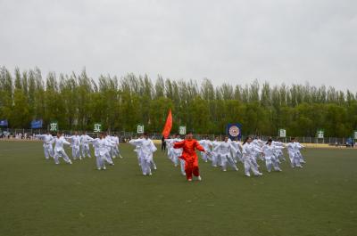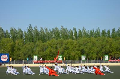 14日上午11时许,beat365太极拳参赛队迈着整齐的步伐有序的进入田径场并开始了比赛。在李京原(2014级)的带领下,各参赛队员齐声高喊“天下为公,志在大同,文韬武略,问鼎苍穹”的口号有序地跑入田径场。在“敬礼”后,音乐声响起,在李京原的带领下,beat365太极拳参赛队便开始了简化24式太极拳的表演。