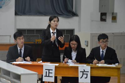 主持人张启聪首先向参赛队员、比赛评委以及在场观众宣读了比赛规则以及比赛程序。本次辩论赛由两场辩论组成,辩题分别为“老员工可不可以基于正当理由逃课”以及“喜新厌旧是正当权利还是弃责背叛”。第一场比赛辩题更贴近老员工现实生活,辩手们的立论和辩驳也更多的利用了身边的例子,正方在尊重规则的前提下选择尊重老员工选择自身发展途径的自由,而反方则站在老员工身份的角度认为员工应该遵守员工守则。比赛过程中双方辩手思维敏捷妙语连珠,获得阵阵掌声。第二场比赛趣味性较大,辩论过程中双方都引用了很多影视文学作品中的爱情故事,极大地增加了比赛的看点。揭晓比赛结果前,吴兴识和张立伟分别对两场辩论进行了精彩的点评分析,指出了辩论中出现的漏洞,表扬了辩手的良好逻辑,同时也提出了几点建议。最终经由评委打分,第一辩题之反方辩队以及第二辩题之正方辩队成功晋级决赛。第一场比赛的正方二辩王帅和第二场比赛的正方四辩叶圣泓则夺得了最佳辩手的荣誉称号。活动最后,曲畅竹和大赛评委为最佳辩手和获胜队伍颁奖并进行合影留念。