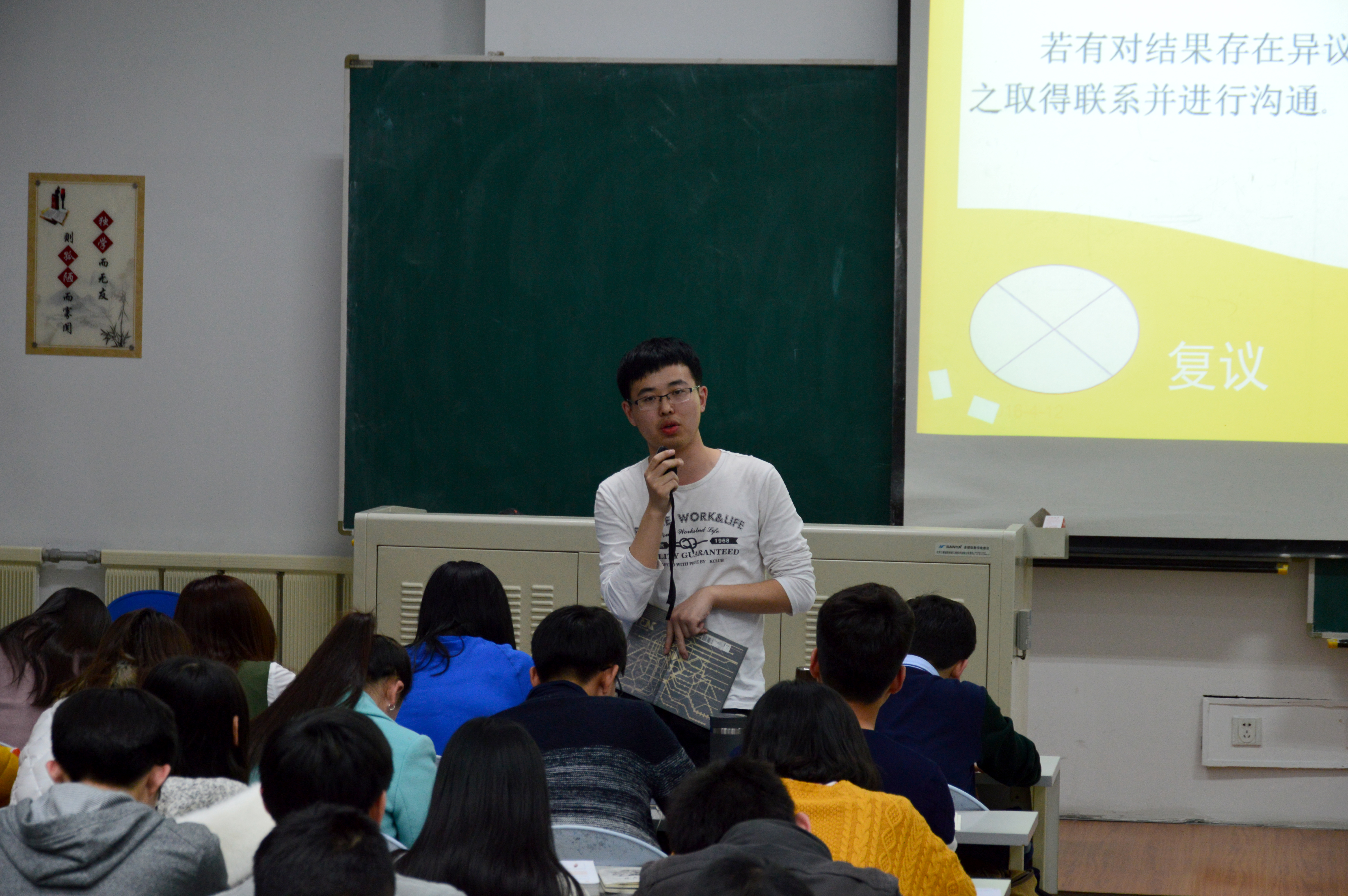 本次活动与2015级“老员工职业发展与就业创业指导”课程相结合,由 2015级全体员工干部组成八个小组,分别对夏令营活动、迎新季系列活动、汉字听写大会活动以及支教活动进行策划,并以PPT的形式进行展示。八组同学的活动策划都包含了前期筹备、活动过程及后期总结三个方面,并在活动细节、活动宣传等方面做出了较为详细的计划。一些小组在活动策划中提出了自己的创新想法,另一些小组则在参考前辈经验的基础上完善了活动方案。小组展示之后,2013级员工干部对各组的展示进行了深刻而又不失趣味的点评。他们对此次活动中各组的成果表示了充分肯定,并在活动细节、活动的可操作性等方面提出了建议。大会的最后,曲畅竹对本次活动进行了总结。她指出了此次员工策划活动中普遍存在的问题,提出要进一步将细节落在实处,并建议员工们学会从整体到局部的思维方式。