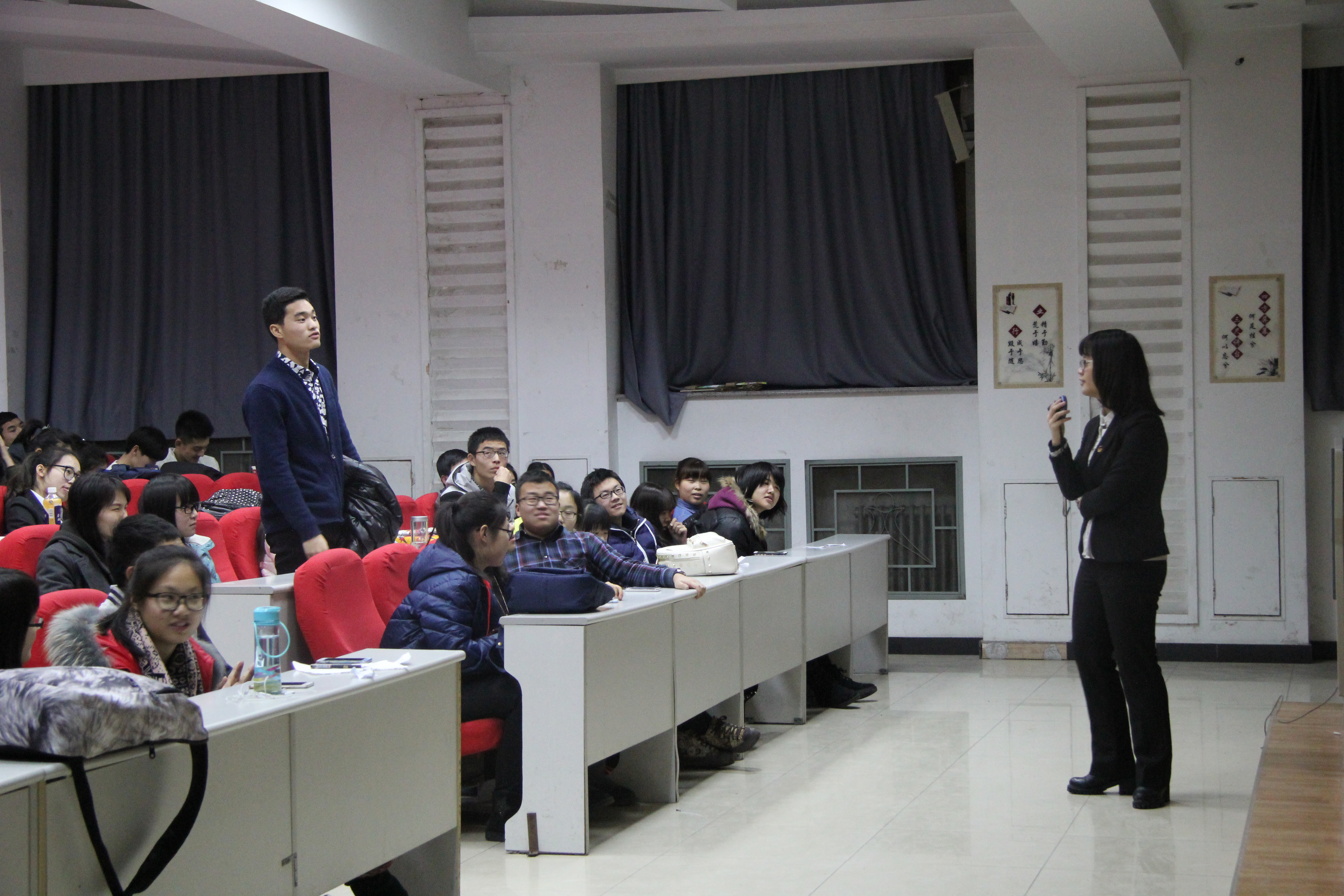 为纪念“12.9”运动,让同学们重温那段满腔报国的热血历史,珍惜今天来之不易的幸福生活,beat365团委社团部联合beat365同为社、beat365农村发展研究协会于12月11日晚6时30分,在前卫南区经信F2阶梯教室举办了“激情青春,给力行政”之纪念“12.9”运动主题知识竞赛。黄蓉(2014级)和明昱含(2015级)担任主持。