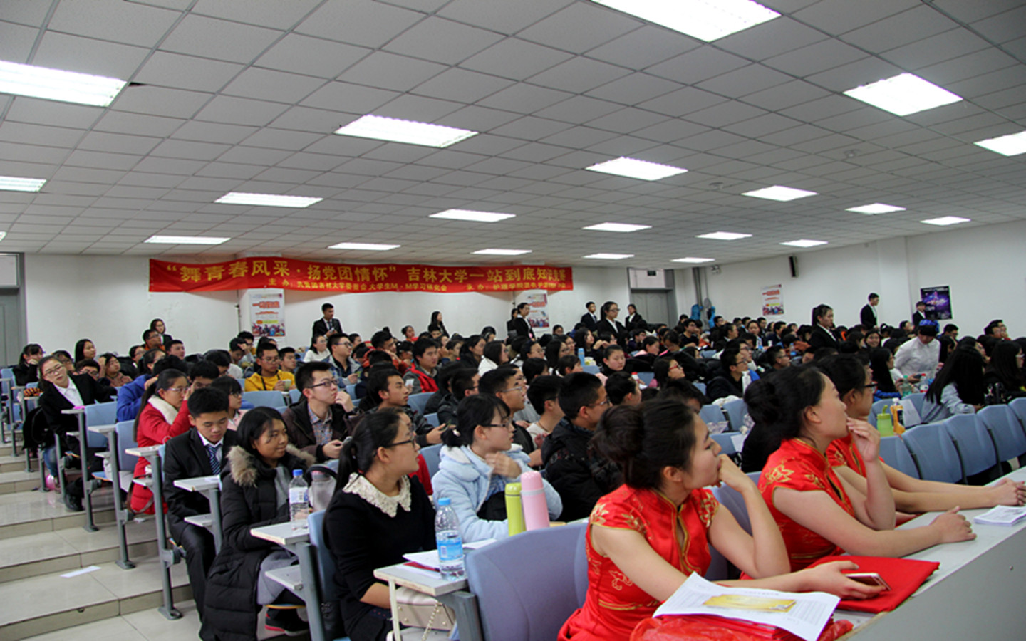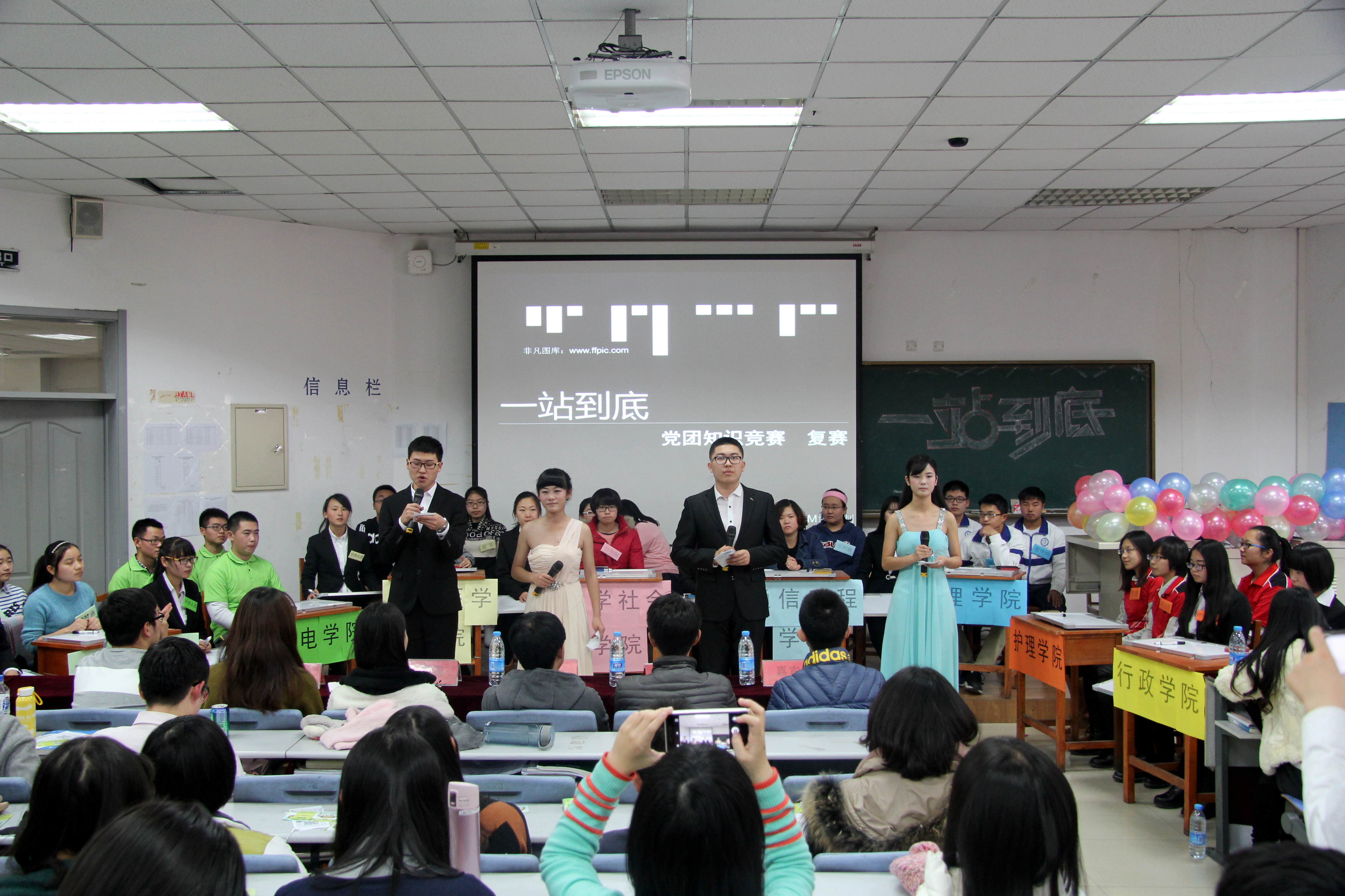 为展现吉大学子学习风采,丰富员工的课余生活,发扬党团情怀精神,共青团beat365体育官网委员会于2015年11月22日在新民校区第二教学楼2401教室主办了以“齐舞青春风采,共扬党团情怀”为主题的“一站到底”知识竞赛的复赛。本次活动由护理学院团委承办,beat365团委协办。比赛分为团体赛决赛和个人赛初赛两部分,beat365、管理学院、哲社学院、物理学院等8个学院分别派出代表队参加比赛。