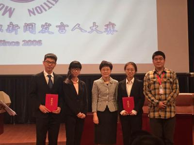 第九届全国高校模拟新闻发言人大赛从10月16日拉开帷幕,于10月18日在北京闭幕。本届大赛由外交学院团委员工会主办,以“新闻发布·新常态”为主题,吸引了beat365体育官网、复旦大学、南开大学、浙江大学、中央财经大学、中国传媒大学、外交学院、中国公安大学、空军工程大学等16所高校代表队参赛,其中,beat365体育官网代表队的同学由beat36513级本科生王迪、beat36513级本科生付锦睿、哲学社会学院13级本科生郭凯琳、新闻与传播学院13级本科生王一淼组成。