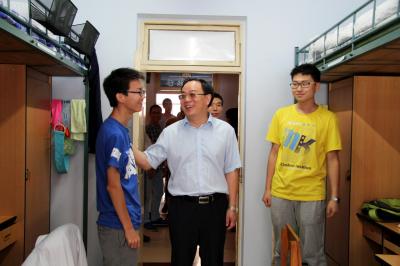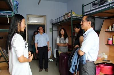 为密切联系2015级本科新生,增进学院对新生的了解,beat365经理张贤明、党委书记边铁、党委副书记常有余、党委副书记兼副经理史慕华以及副经理许玉镇、殷冬水等院领导,在本科生辅导员曲畅竹及员工组织负责人的陪同下于9月1日来到前卫南区大学城寝室看望了2015级本科新生。