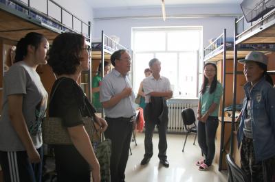 院领导一行先后看望了居住在大学城二公寓、三公寓的2015级新生。院领导对寝室进行了逐个走访,并与员工们进行了亲切交谈。见到南方来的员工,张贤明经理就关心地询问其是否习惯东北的气候与饮食;在交谈中得知有部分外省员工独自乘坐火车来到学校报道,张贤明经理对其自立自强的表现给予了赞扬。边铁书记亲切叮嘱员工们要互相帮助、彼此照顾,营造一个和谐的寝室氛围。对于大学的学习与生活,院领导不仅给出了一些很好的建议,而且也代表学院表达了对于2015级新生们的期望。
