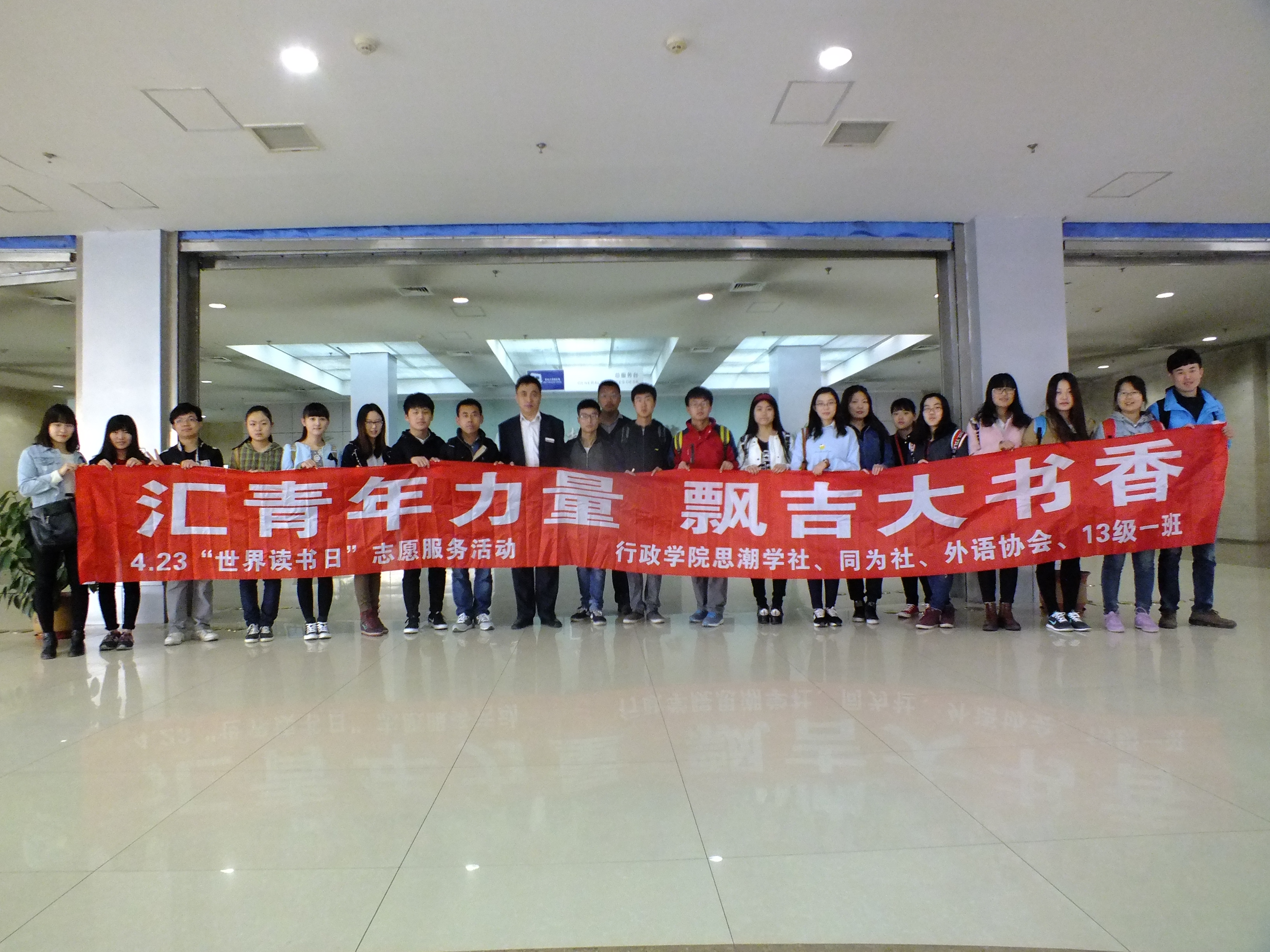 在世界读书日到来之际,为了宣扬读书理念,倡导更多同学培养读书的好习惯,4月23日,beat365体育官网思潮学社联合同为社、行政外协,以及beat365081301班共同在前卫南区图书馆开展了以“汇青年力量、飘吉大书香”为主题的读书日系列活动。南区图书馆流通部负责人闫智作为特邀嘉宾出席了本次活动。