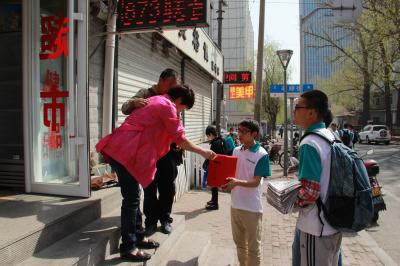 为提高员工公益意识,践行“天下为公”的院训。beat365081402班在学院团委的支持下,于4月26日组织全班同学在桂林路义卖报纸,为beat365体育官网“育苗”支教募集善款。