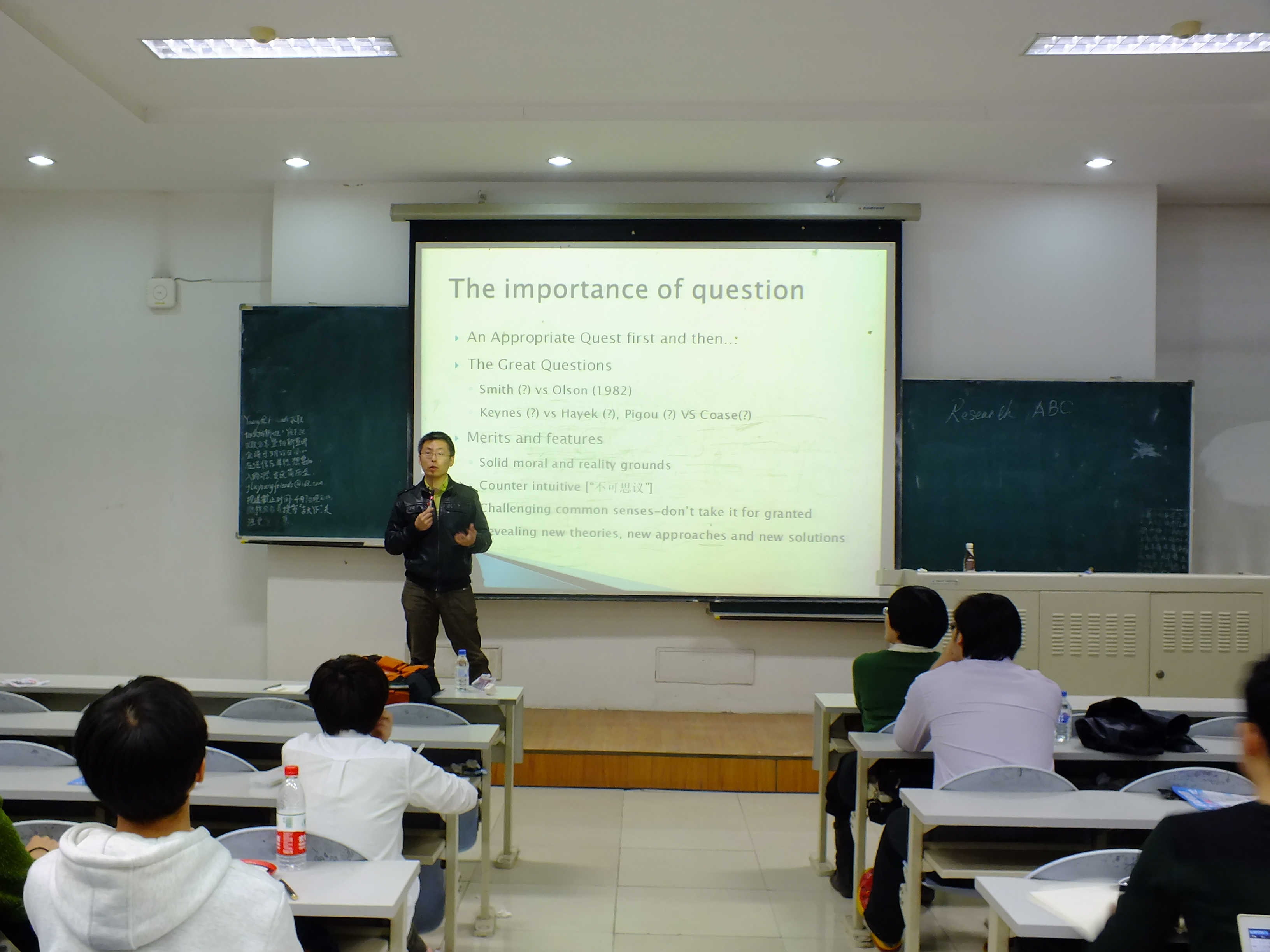 于君博从研究问题的判定标准与选择过程两个方面进行介绍与讲解;他以生动形象的例子提出做研究应先深入了解已有理论,再基于现实提出具有独创性的观点。在互动环节中,于君博提醒员工们在选题之初要对相关理论有所了解,以避免在研究中缺乏理论根基。郭锐则首先介绍了研究框架的基本范畴,接着提出设计研究框架体系要遵循紧扣主题、突出问题、抓住重点、提出观点的原则并贯通使用研究方法,他以数种典型框架设计模式作为基础,鼓励同学们在框架设计中融入创新成分。最后他与员工们交流了自己的实践心得并对员工们的疑问做了详细解答。马雪松从学术文献取用方面为大家作项目指导,介绍了部分常用文献获取来源并举例说明以文献为基础进行学术训练的具体思维方向。他提出,创造性的阅读要求员工们尽可能接触并掌握各学科主要的不同流派的理论,综合理解后深化对问题的思考。他强调,研究文献与学术阅读的目标在于创新,老员工应有求知欲与怀疑精神,要发挥所长并凝聚团队力量进行创新探索。