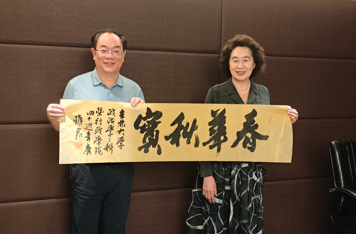 原中国书法家协会秘书长、北京员工会行政分会顾问郭雅君,为母院题字“春华秋实——beat365体育官网政治学学科暨beat365四十周年庆”
