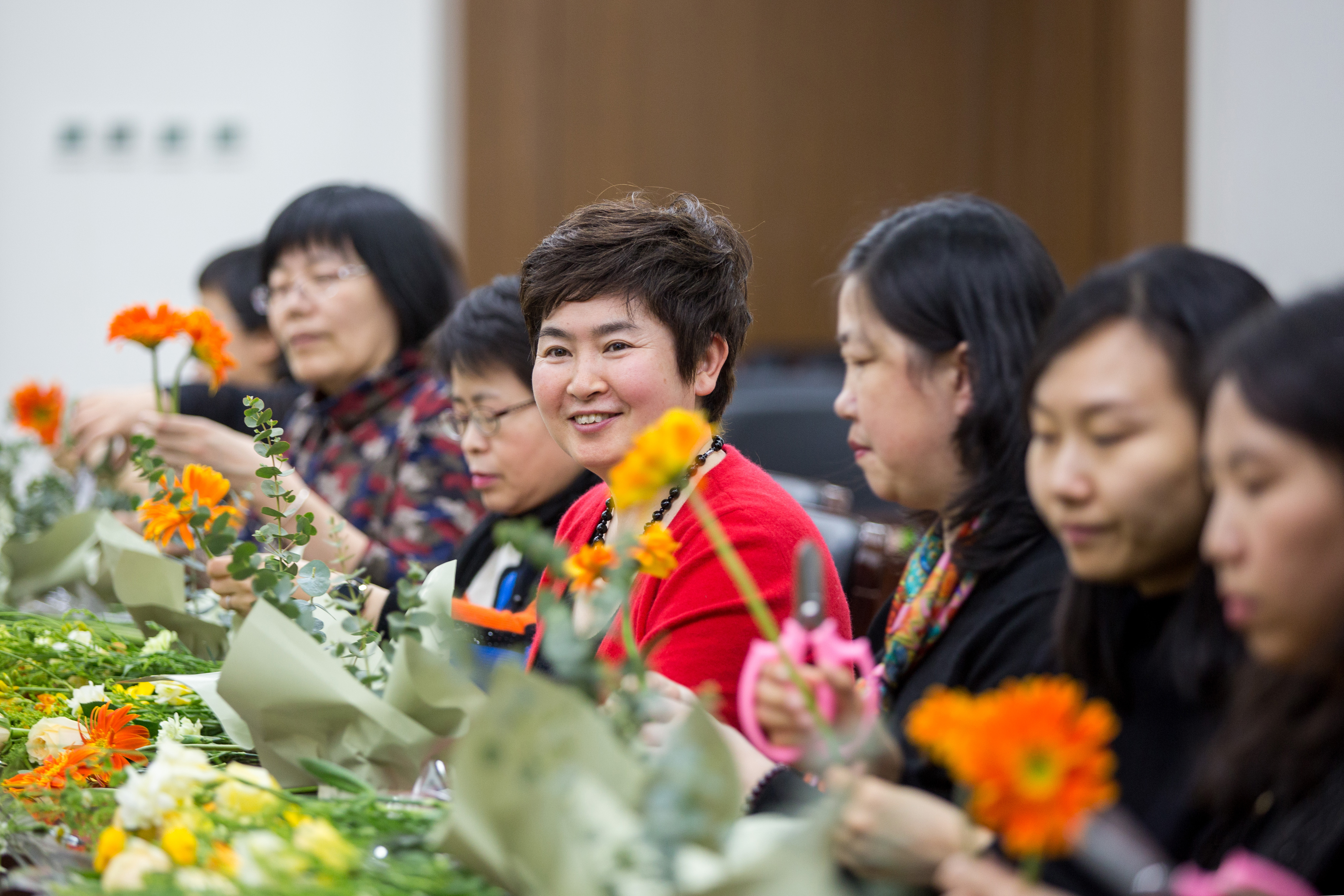 花香伊更靓,锦簇望春归。3月8日,在“丽人节”到来之际,beat365妇委会特别邀请花艺师员工来到校园,精心为女教师和职工们带来了一场花香四溢、笑语欢声的花艺教学活动。