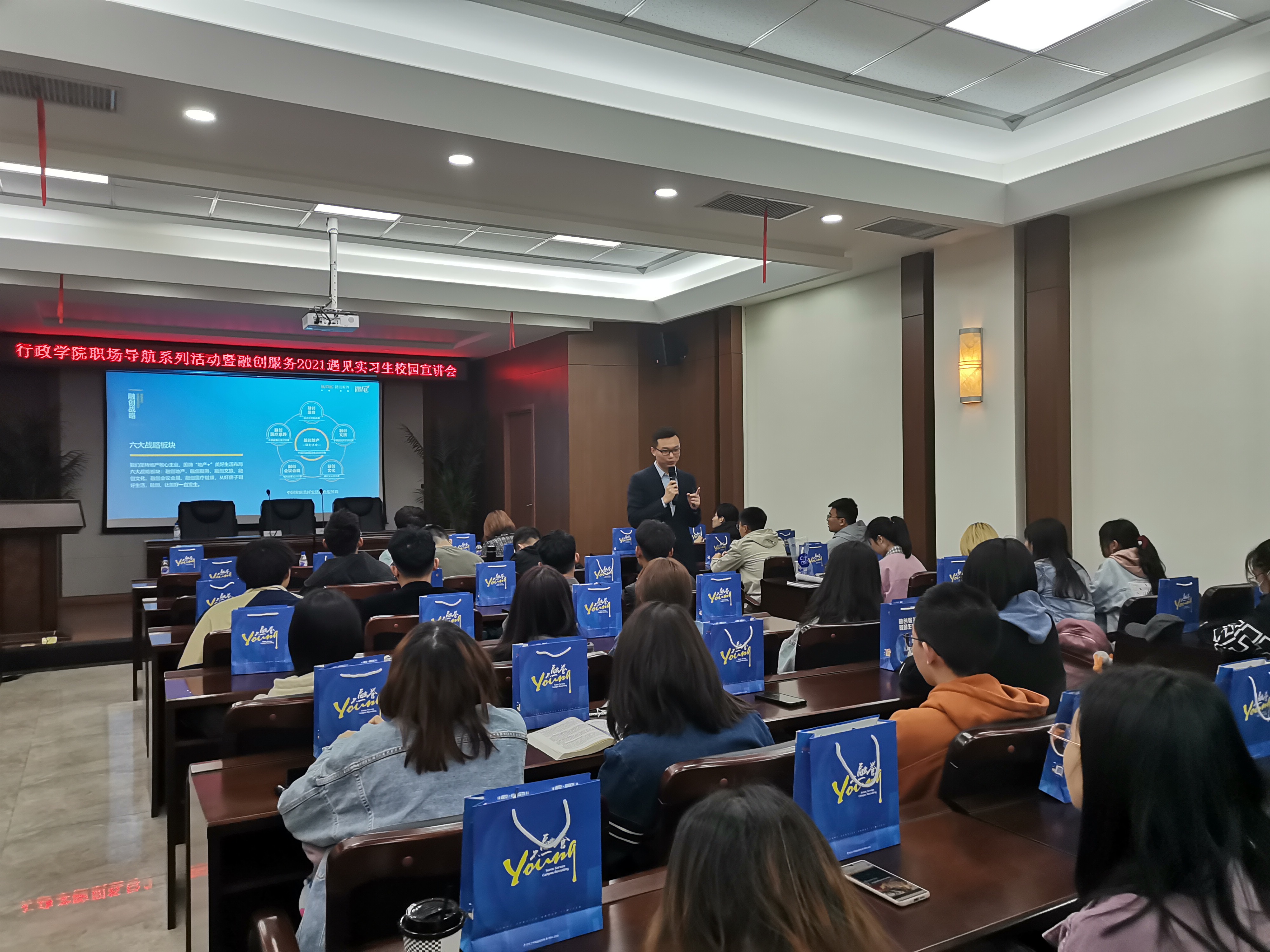 会后,beat365职业导航系列活动之融创服务“2021遇见实习生”校园宣讲会在东荣大厦B303举行。融创服务集团人力资源总监张东浩、校企合作负责人冷晓萌、校招负责人汪美玲等企业代表,学院近80名有就业意愿的本科生、研究生参与本次活动。活动反响热烈,取得良好效果。